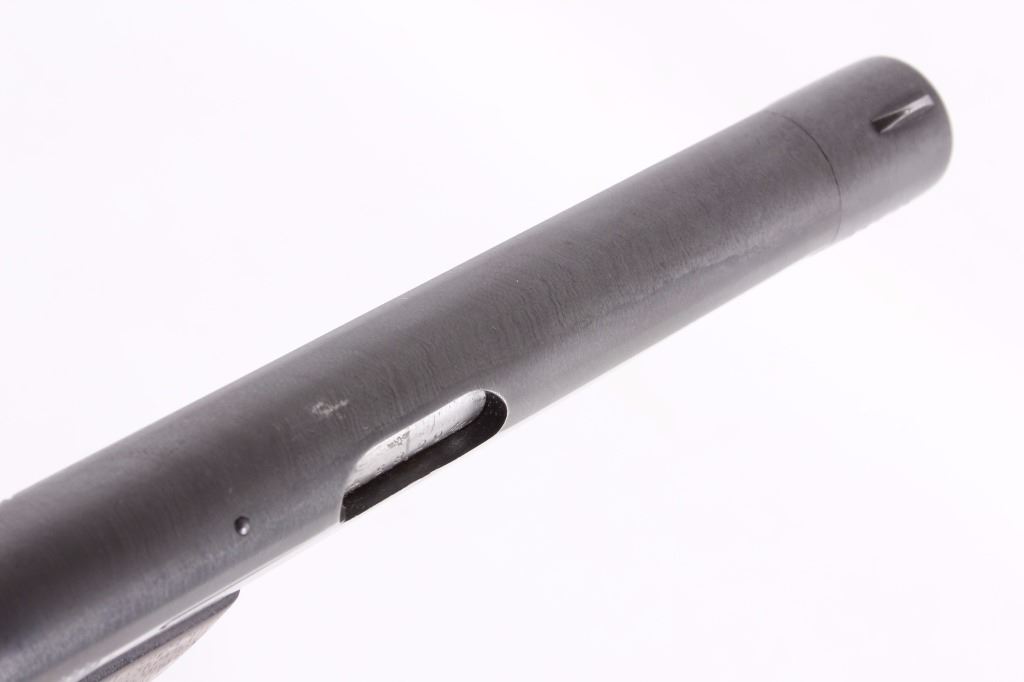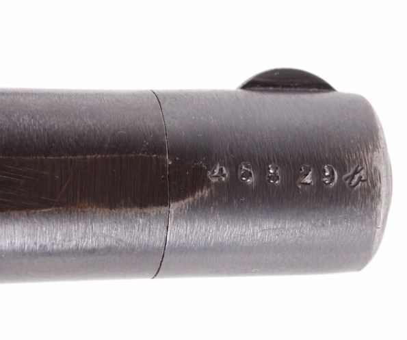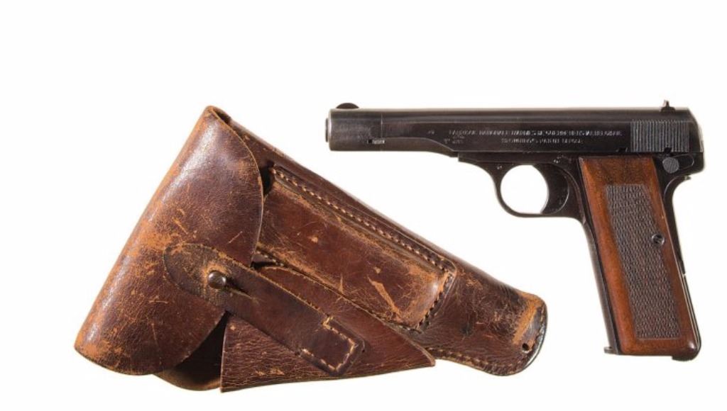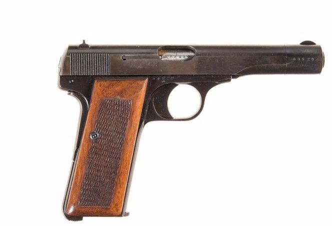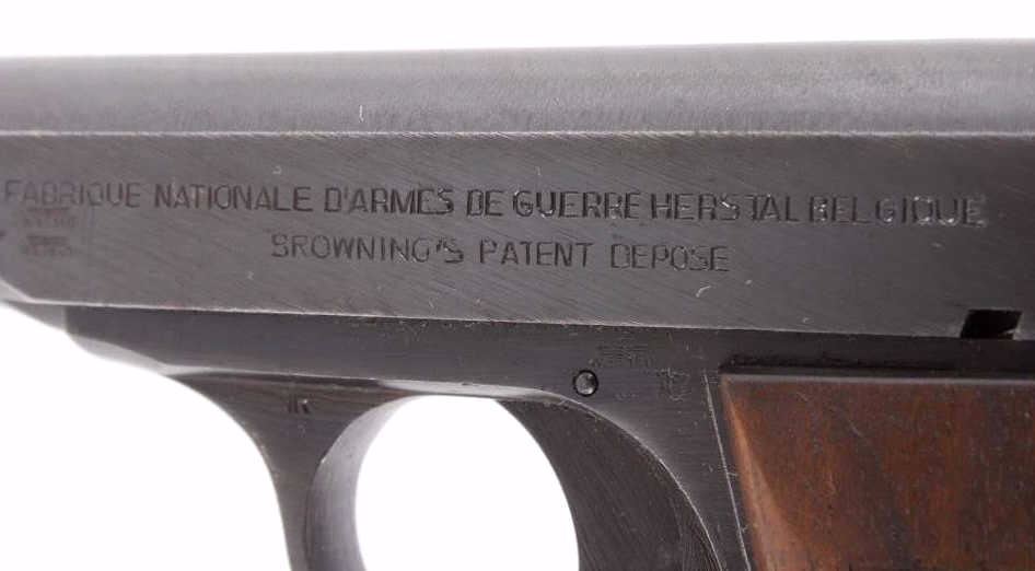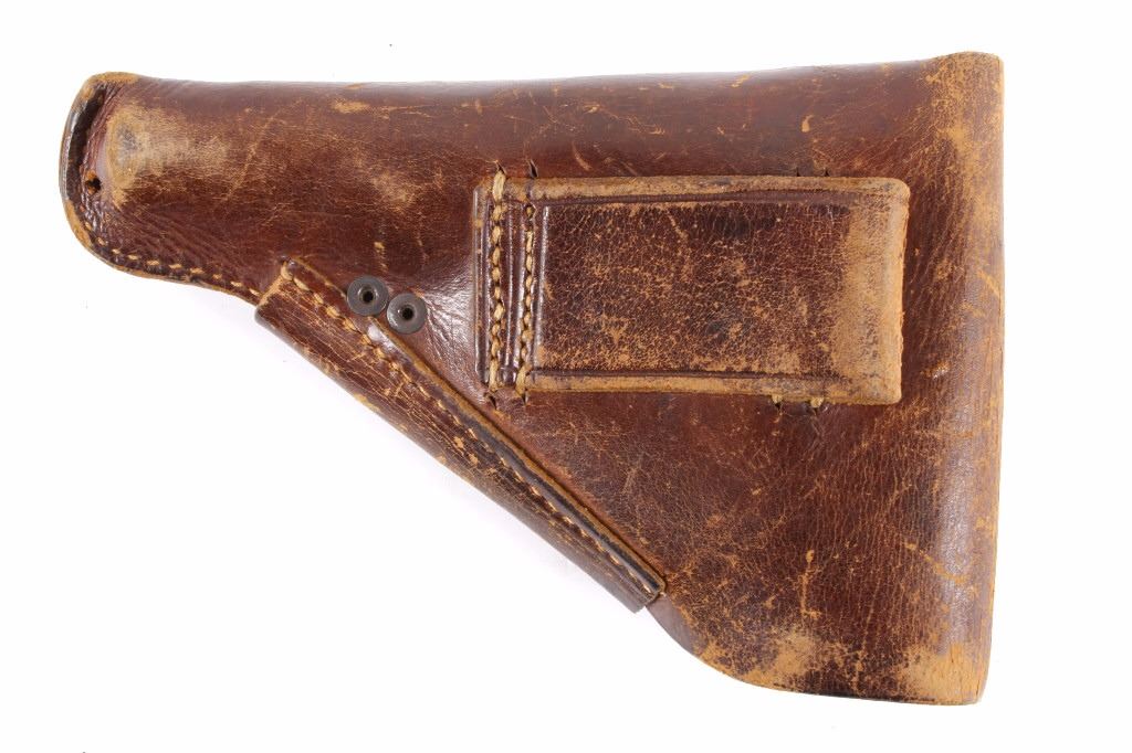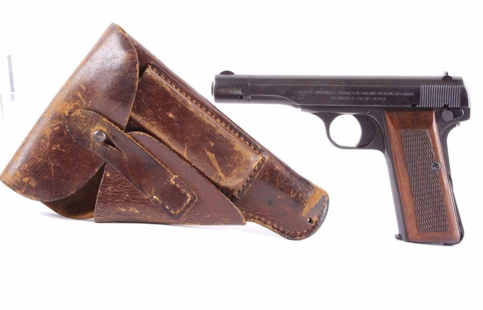 This is an exceptionally rare Belgian Browning Fabrique Nationale Model 1922 pistol and was a WWII Nazi German issue pistol in 7.65mm caliber. The pistol was used by both the German Army NCOs and Luftwaffe pilots. The pistol has the original frame and slide stamp with “eagle/WaA140” Nazi German acceptance marks and “eagle/swastika” firing proofs. The handgun is fitted with fixed sights and the walnut wood checkered grips and shows much if not all of the original blue finish with holster wear (fine condition). Included with the pistol is the original brown leather Luftwaffe Nazi German flap holster, unmarked. This is an excellent European Theater capture pistol. Firearm marked, "FABRIQUE NATIONALE D'ARMES DE GUERRE HERSTAL BELGIQUE BROWNING'S PATENT DEPOSE - 46829 (all matching)." Serial Number 46829B. Curio & Relic FFL Transfer or NICS Background required.