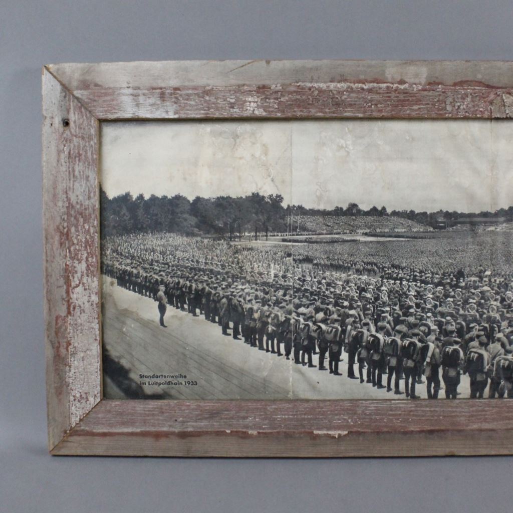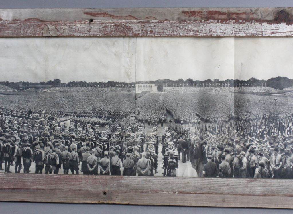 Nuremberg Party Rally Photograph. The Nuremberg Party Rally was an annual rally meant to showcase Nazi power and unity between the Nazis and the German people. The rallies started in 1923 and ended in 1938 as the outbreak of war in 1939 put a significant portion of Germany’s population into the military. This photo is has some stains along the top and some wrinkling, this photo was folded in the past. Good condition. From the Michael Clifton collection. 52" x 16"