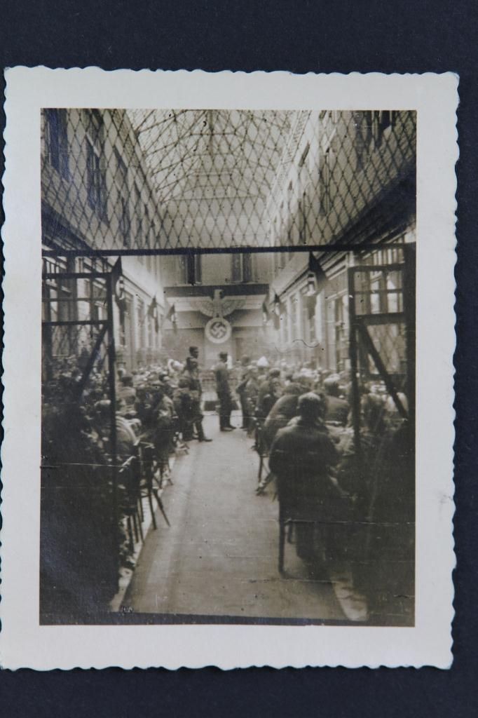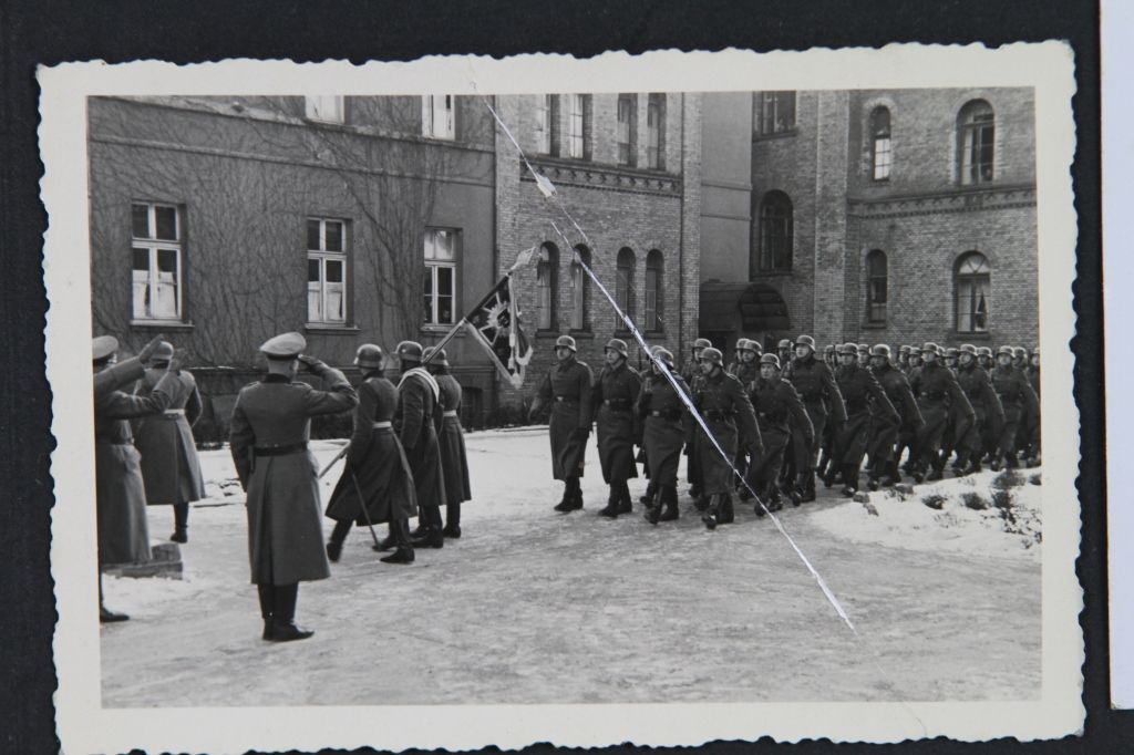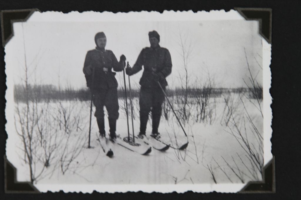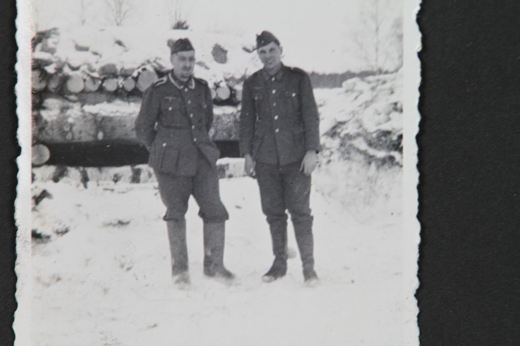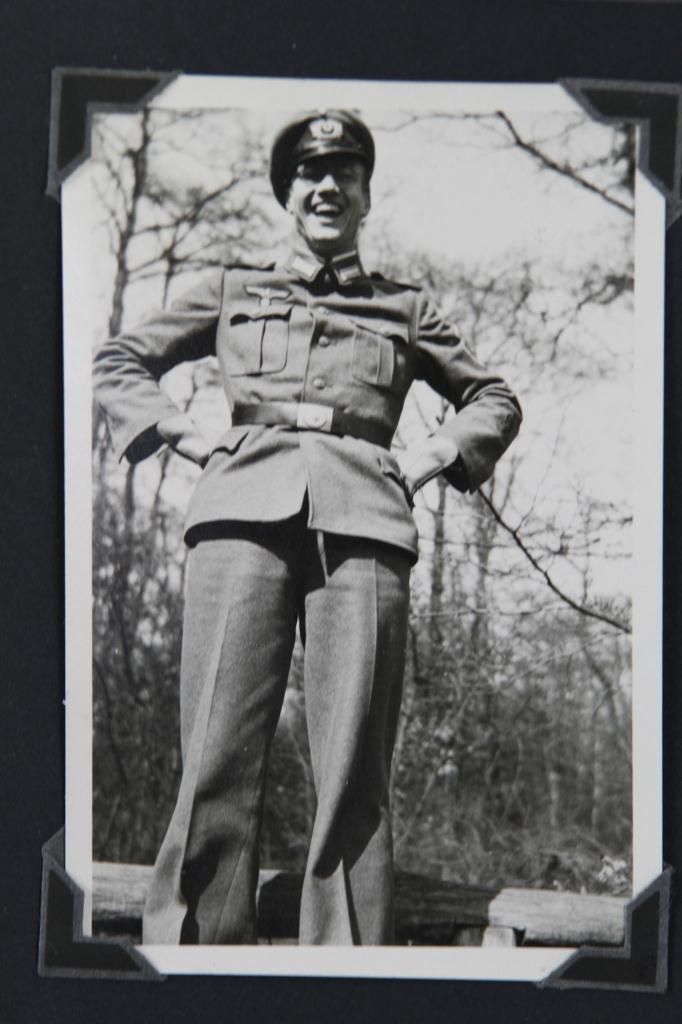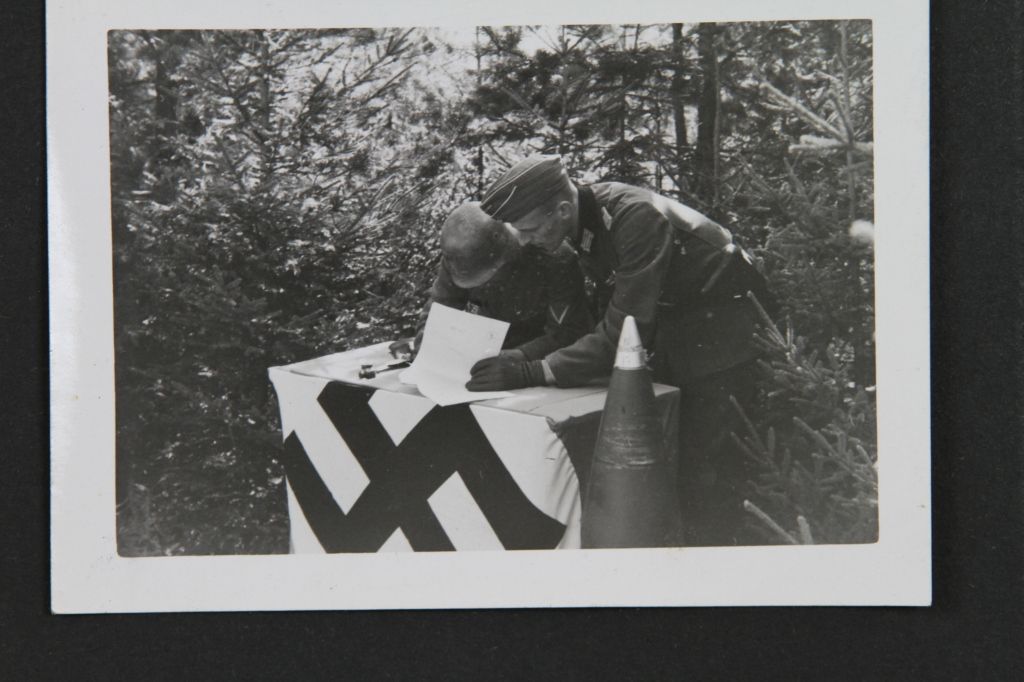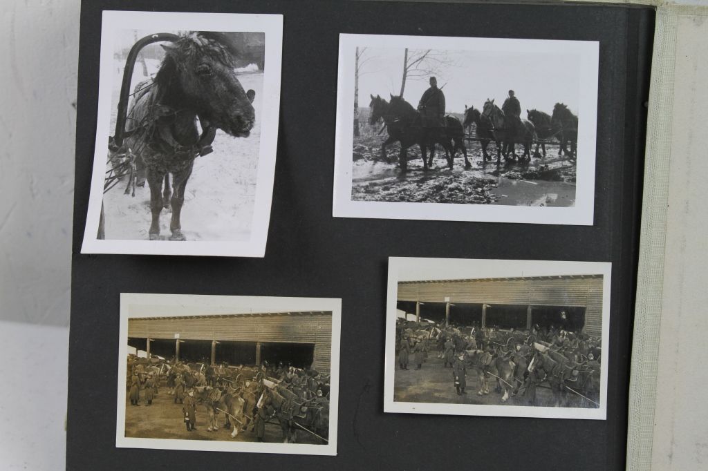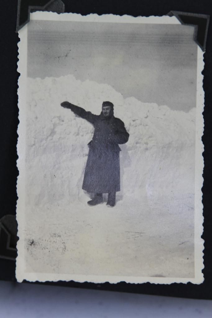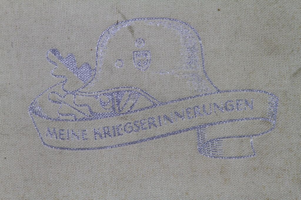 WWII Nazi Photo Album This Photo Album follows one German Nazi Soldier thru the Russian Front of WWII. RARE piece of History. Front of the book reads, "Mein Kriegserinnerungen" (Translated to "My War Memories")with a Nazi Helmet also. Around 100 Photographs with some to most having writing on the back.