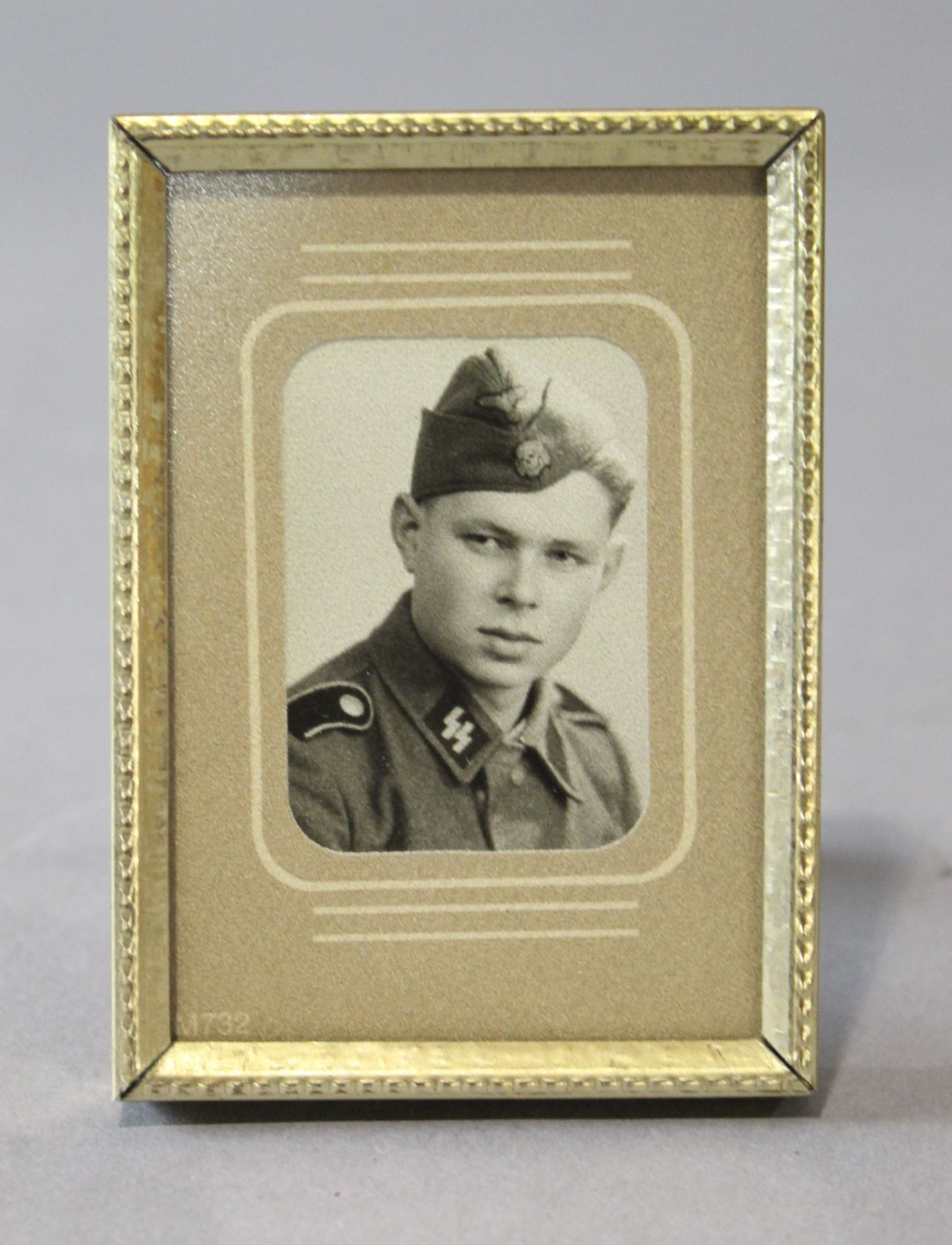 Small studio picture of a SS soldier dated to march 1944. Picture is framed with a plastic screen covering the photo. Well kept. Overall very good condition. See photos.
