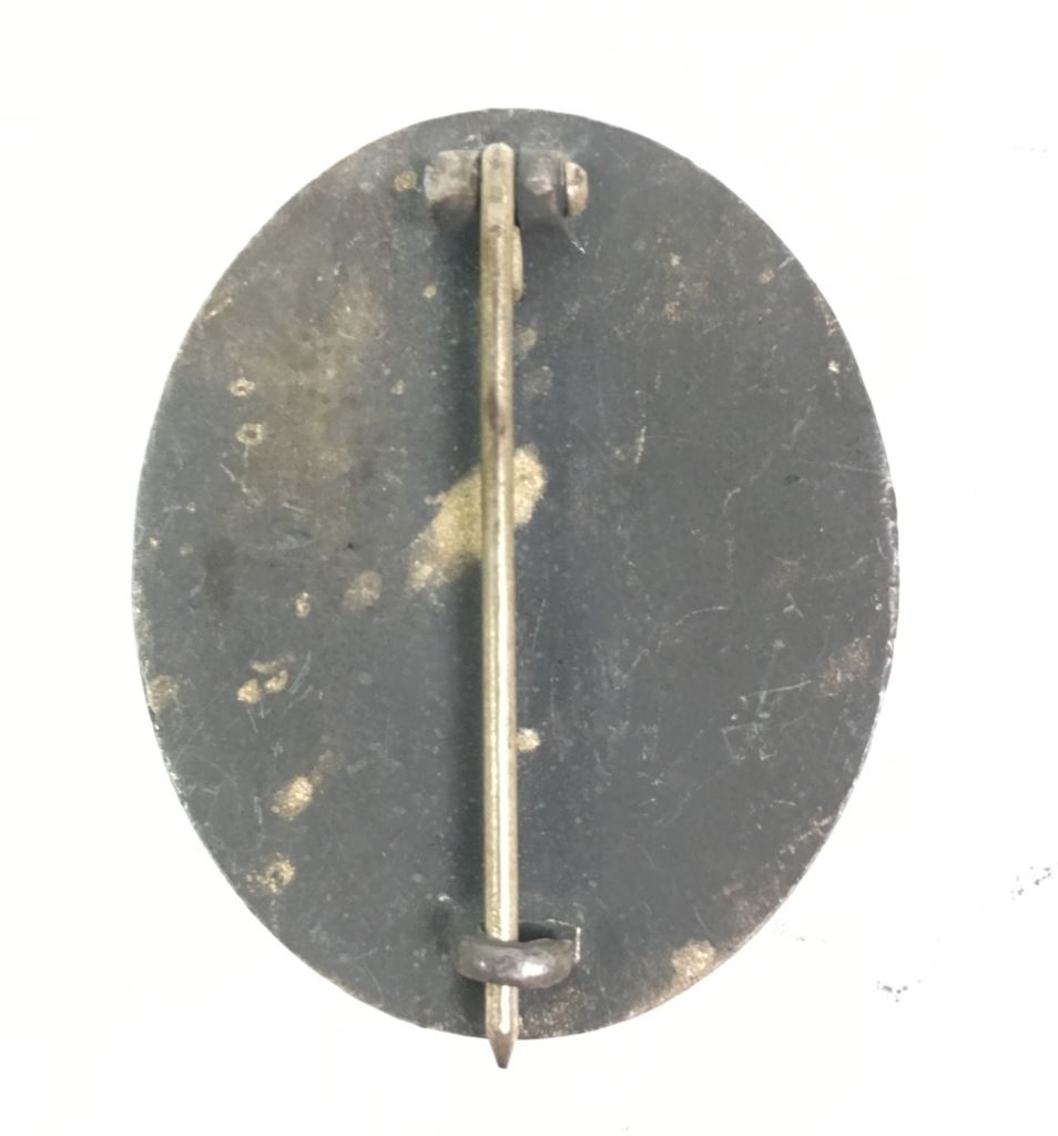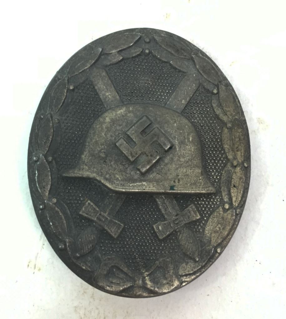 WWII Nazi Wound Badge. The Wound Badge was an award first instituted by Kaiser Wilhelm II and would be later used by Nazi Germany. The Wound Badge would be given to German servicemen and later, German civilians, wounded as a result of enemy action. The Wound Badge came is three different ranks of black, silver, and gold. Each one was awarded for being wounded once or twice (black), three or four times (silver), and five or more times (gold). The Wound Badge has the German helmet with swastika and crossed swords clearly visible. This wound badge has the black finish worn off on the right side. Pin on back is still present. Good condition. Disclaimer: The item(s) featured in this listing have been described to the best of our ability, and authenticity is unknown. Buyer assumes all responsibility with regard to buying and is afforded every opportunity to request additional photos, ask detailed questions, and otherwise make inquiries into the specifics of the item. Buyer is responsible for making the decision on whether or not to determine if item is authentic. Donley Auctions makes every effort to provide accurate information and all content and information in a given listing is provided "as is" and without warranty, implied or otherwise. Donley Auctions assumes no liability or responsibility should information provided be incorrect. No refunds are given for any military relics, regardless of age or condition.