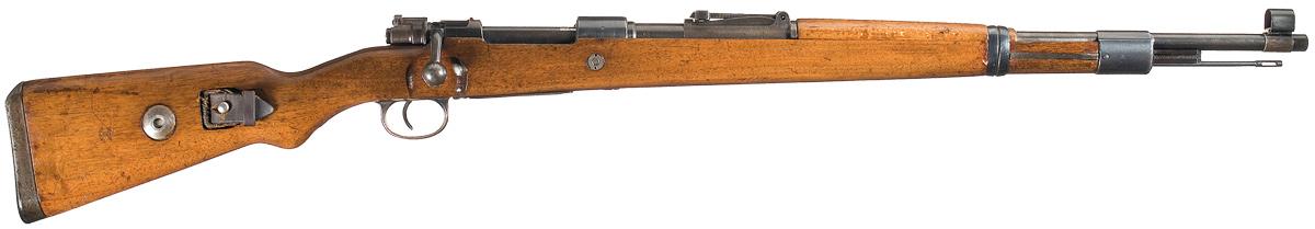 Condition: Very good. The rifle retains at least 80% original blue finish with some thinning to a smooth gray and some high edge wear. The stock is also very good with scattered minor scuffs, dents and scratches. The sling is good. The markings are clear. The action is excellent.