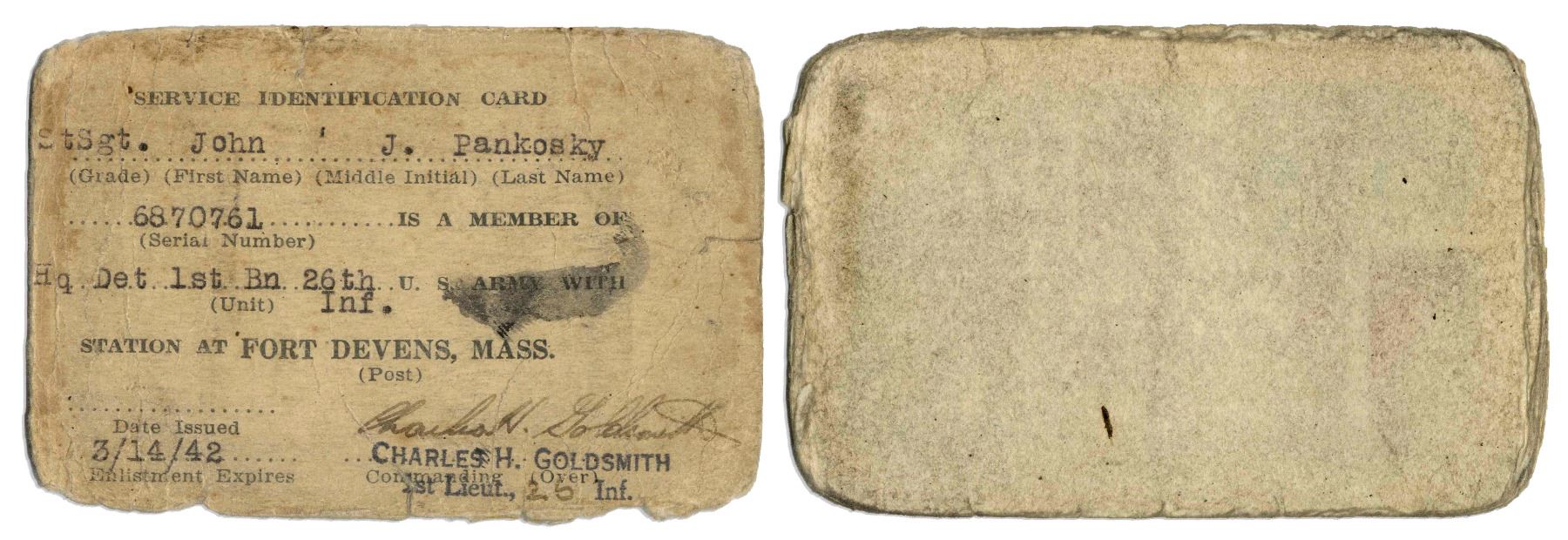 Large Nuremberg book signed by 18 of the most notorious Nazi defendants during the Nuremberg War Crimes Trials, accompanied by two ID cards of the U.S. guard who acquired the signatures. Book, entitled ''Nurnberg'' by Charles W. Alexander, was published after Nuremberg was selected as the city for the trials, and includes photos of the city as well as the trial, including the Palace of Justice, defendants' cell block, witnesses, defendants, prosecutors, etc. Nuremberg: Karl Ulrich & Co., 1946. Book is signed by the following 18 defendants on pages throughout: Hermann Goring, Karl Donitz, Hans Frank, Wilhelm Frick, Walther Funk, Alfred Jodl, Ernst Kaltenbrunner, Wilhelm Keitel, Konstantin von Neurath, Franz von Papen, Erich Raeder, Joachim von Ribbentrop, Alfred Rosenberg, Fritz Sauckel, Arthur Seyss-Inquart, Baldur von Schirach, Albert Speer, and Julius Streicher. Some individuals date their signatures to October 1946, at the end of the trial shortly after sentencing took place. Book measures 9.5'' x 12.5''. Leather binding with illustrated boards. Mild dampstaining to front board, overall very good condition with bold signatures. Lot also includes two identification cards of the guard, John J. Pankosky of the U.S. Army's 26th Infantry: (1) International Military Tribunal card issued 27 July 1946 with Pankosky's photo. Measures 4'' x 2.75''; (2) Pankosky's Service Identification Card issued 14 March 1942, signed by Pankosky on verso with his fingerprint. Measures 3.75'' x 2.75''. Wear to both cards, very good condition.