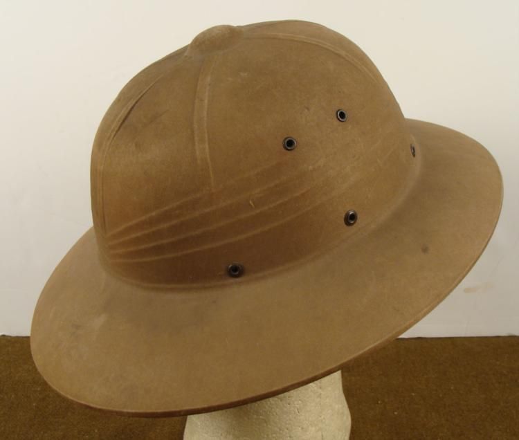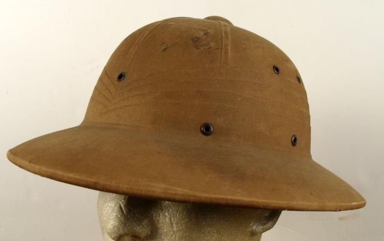 HERE IS A WWII ORIGINAL MARINE PACIFIC THEATRE PITH HELMET. IT COMES WITH A SWEATBAND AND IS ON A PRESSED CANVAS. IT IS IN GOOD CONDITION WITH SOME WEAR AND STAINS THROUGHOUT. * *