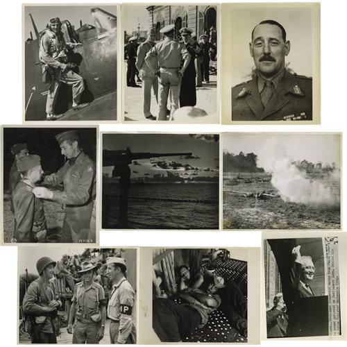 <B>World War II Official Wire Service and Press Photographs.</B></I> 81 different, mostly 8" x 10" size, and mostly American subjects. A few significant personalities: Franklin Delano Roosevelt, numerous generals and admirals, etc. Most show the day-to-day activities in the military, including some combat images. An interesting group; most in fine condition.<BR><BR><b>Shipping:</b> Small Flat (<a target="_blank" href="http://www.heritageauctions.com/common/shipping.php">view shipping information</a>)