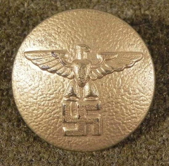 This is a WWII era Nazi Tunic Bottom from a political leader. They are just under an inch in diameter. It is in very good condition, with pin back. The back has an RMZ mark and number. * This is a greet item for a collection, or extra button for a uniform.