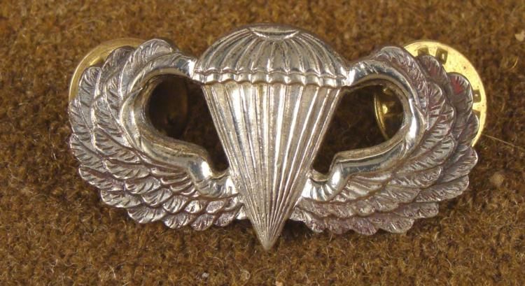 OFFERED HERE IS A WWII PARATROOPER WINGS INSIGNIA. IT HAS A CRIMP BACK AND IS MARKED "N S MEYER INC NEW YORK". THE INSIGNIA ALSO HAS 2 SHIELD LOGOS AND IS 1 1/2". * * *