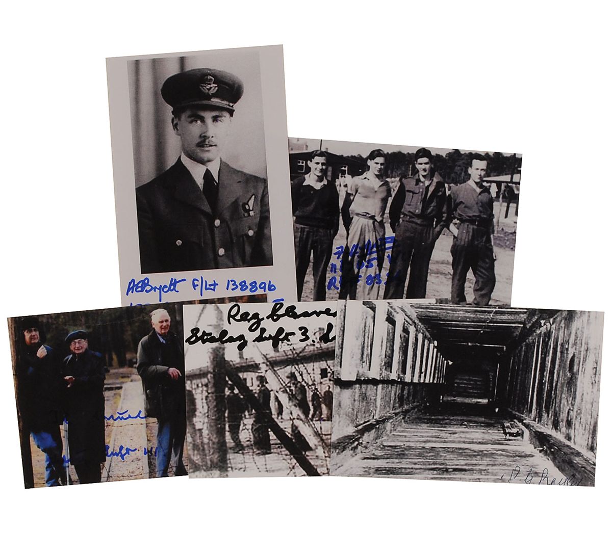 Five glossy photos, one color, 6 x 4 and 4 x 6, each signed in felt tip or ballpoint by one of the famous escapees. Signers are: Alan Bryett, Paul Royle, Alfie ‘Bill’ Fripp, Frank Stone, and Reg Cleaver. In overall fine condition.