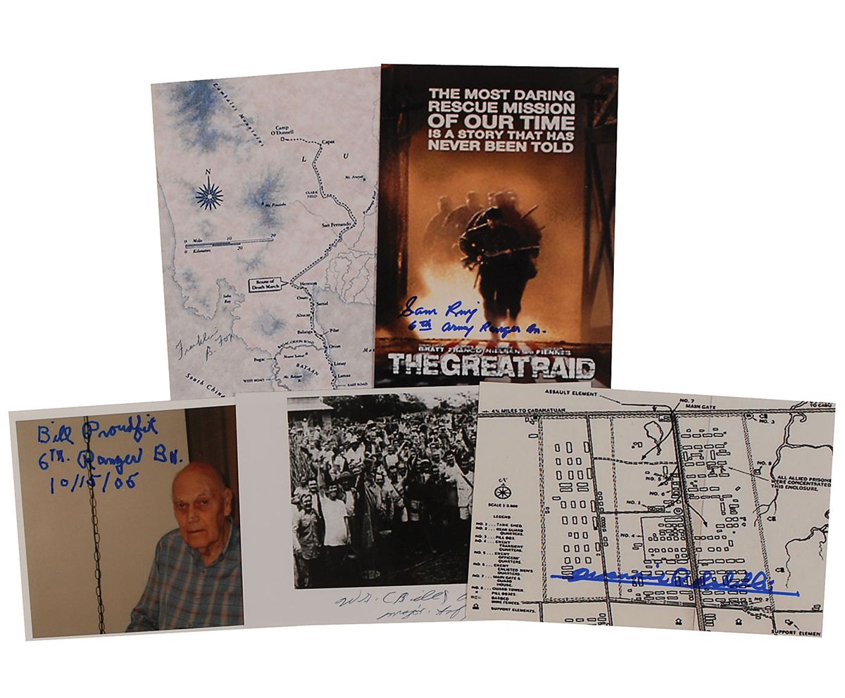 Five glossy photos, 4 x 6 and 6 x 4, each signed in felt tip or ballpoint by a participant in the ‘Great Raid.’ Signers are: Samuel Ring, Franklin Fox, William Adair, William Proudfit, and Francis Schilli. In overall fine condition.