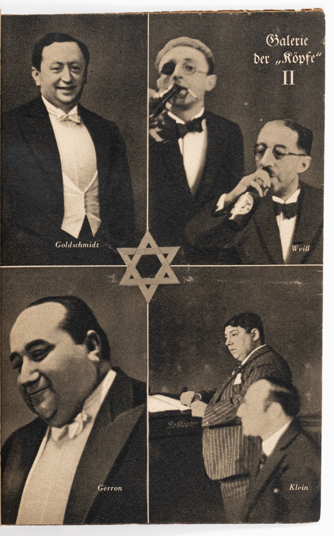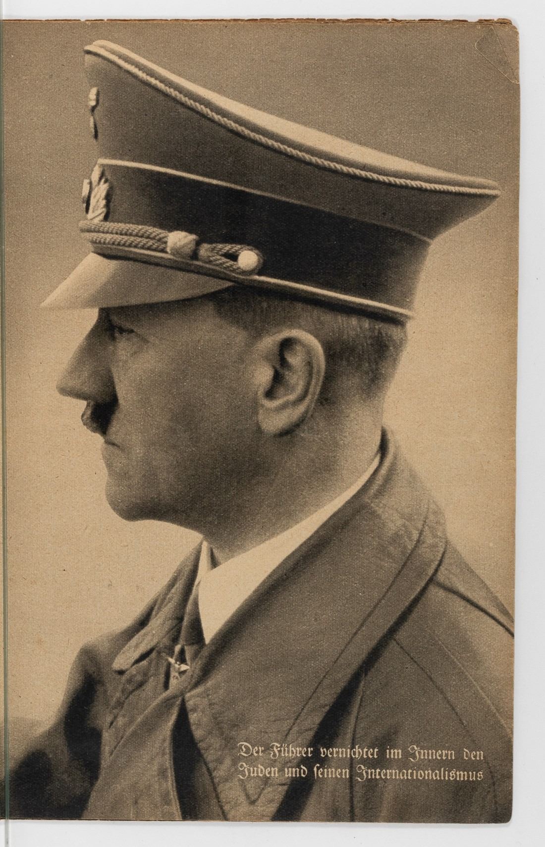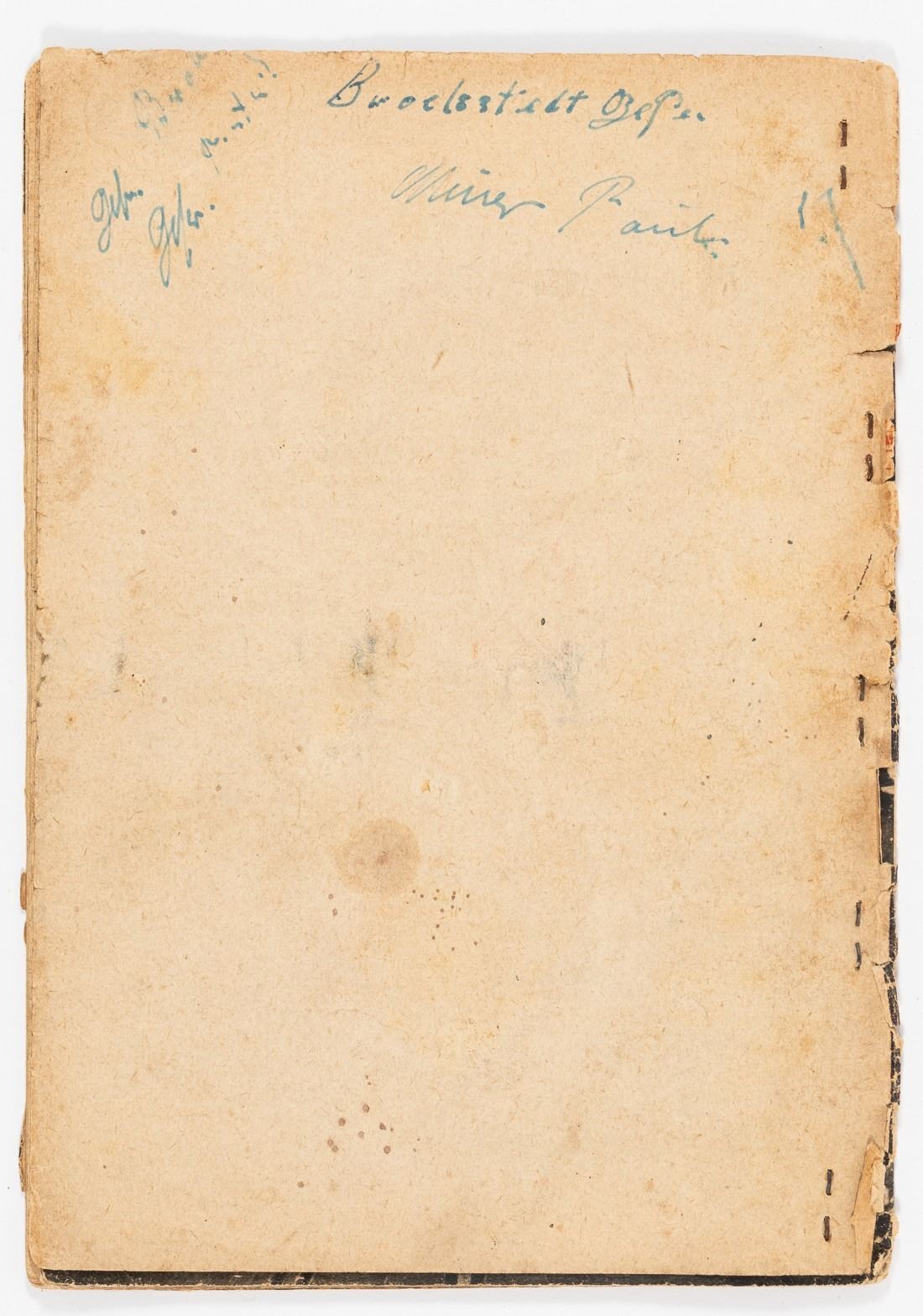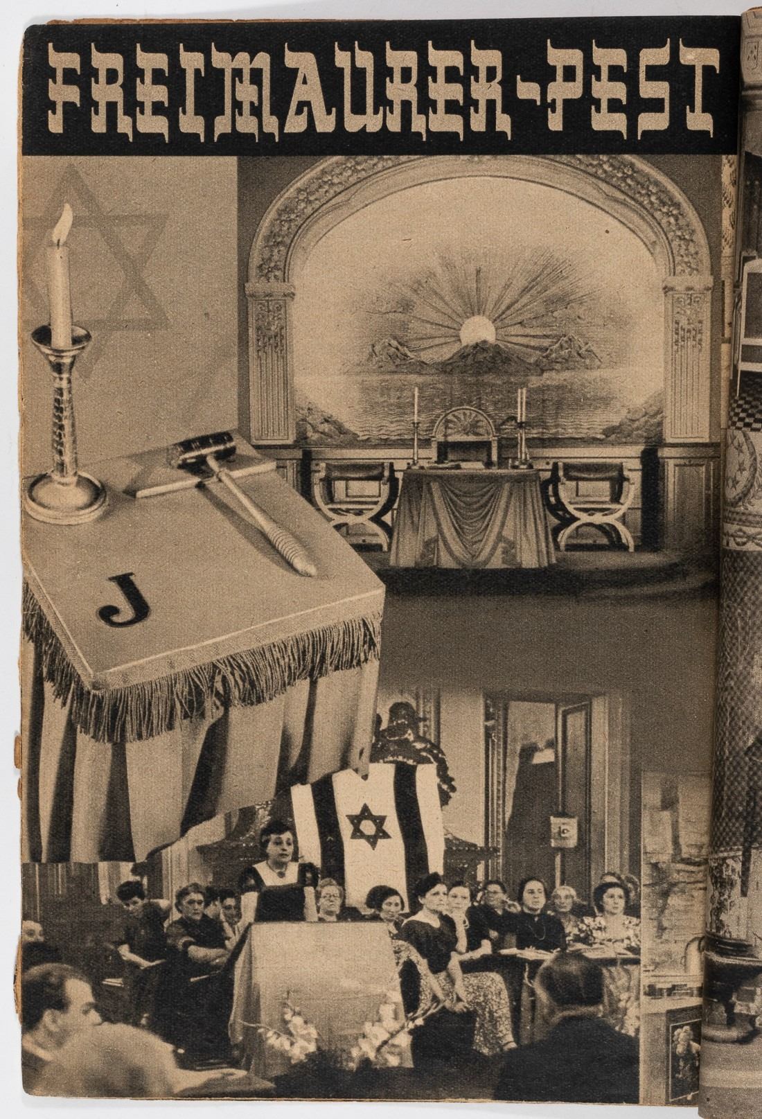 German WWII xenophobic propaganda publication 'International People Melange or United National States of Europe?' written by Dr. Robert Ley, Nazi politician and head of German Labor Front. Published by the German Labor Front in 1941, 32 pages, 8 x 5.5 inches. Many photographs, staple-bound, worn covers, notations on back cover.