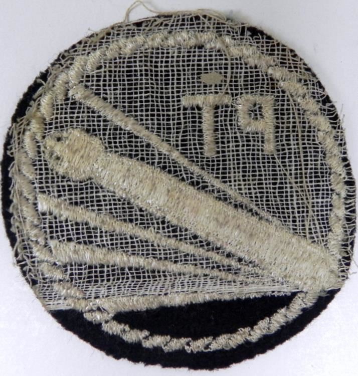 THIS IS A WWII "PT" BOAT BOMBER PATCH. IT IS BLACK W/WHITE EMBROIDERY--PT WITH BOMB.
