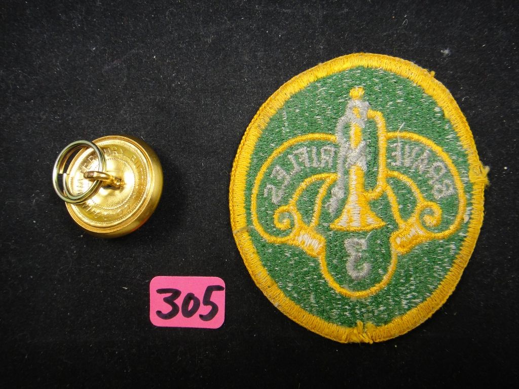 Includes: heavily plated, brass Marine overcoat button and 3rd Brave Rifles Patch.