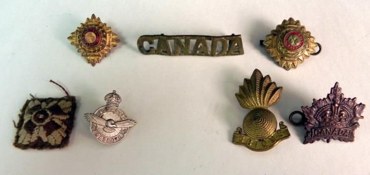 WWII RCAF/MILITARY INSIGNIA + RCAF RESERVE MEDAL-MAKER MARKED---NICE WWII GROUP