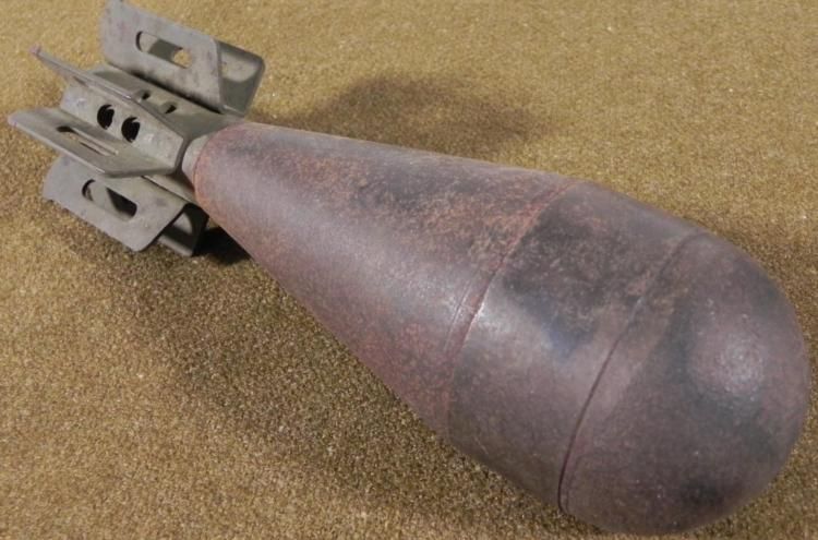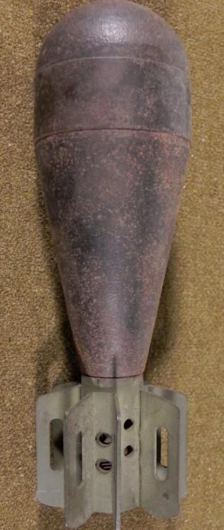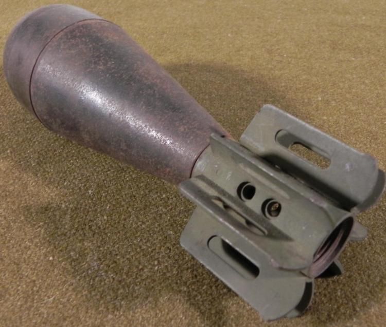 THIS IS A WWII ROCKET GRENADE ARTILLERY BRING BACK. IT IS 7 1/2" TALL AND HAS A FINNED BOTTOM. * * *