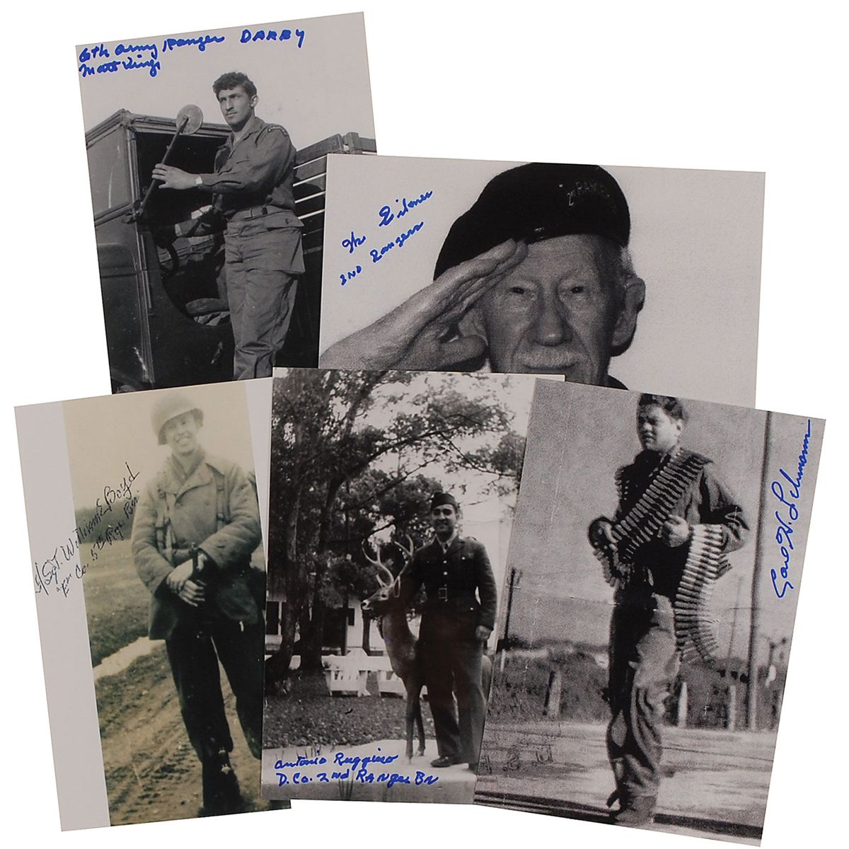 Five glossy photos, 4 x 6 and 6 x 4, each signed in felt tip or ballpoint by the soldier pictured. Signers are: Antonio Ruggiero, James Eikner, Carl Harrison Lehmann, Matthew Vingi, and William Boyd. In overall fine condition.