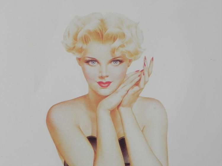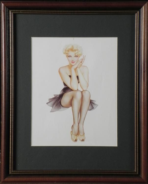 THIS IS GORGEOUS WWII SCANTILY CLAD BLOND PIN-UP GIRL PRINT THAT IS FRAMED & MATTED. ITS DIMENSIONS ARE 12X15". * * *
