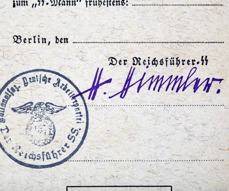 Should one experience the fake cards this is a stand out and deemed authentic. The paper is exactly right for the period, the same paper but of somewhat heavier stock was use for boxing German 8mm cartridges, printed Himmler's signature and stamp.