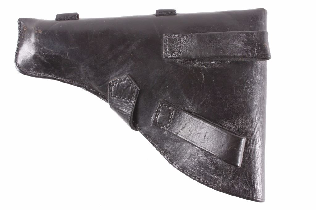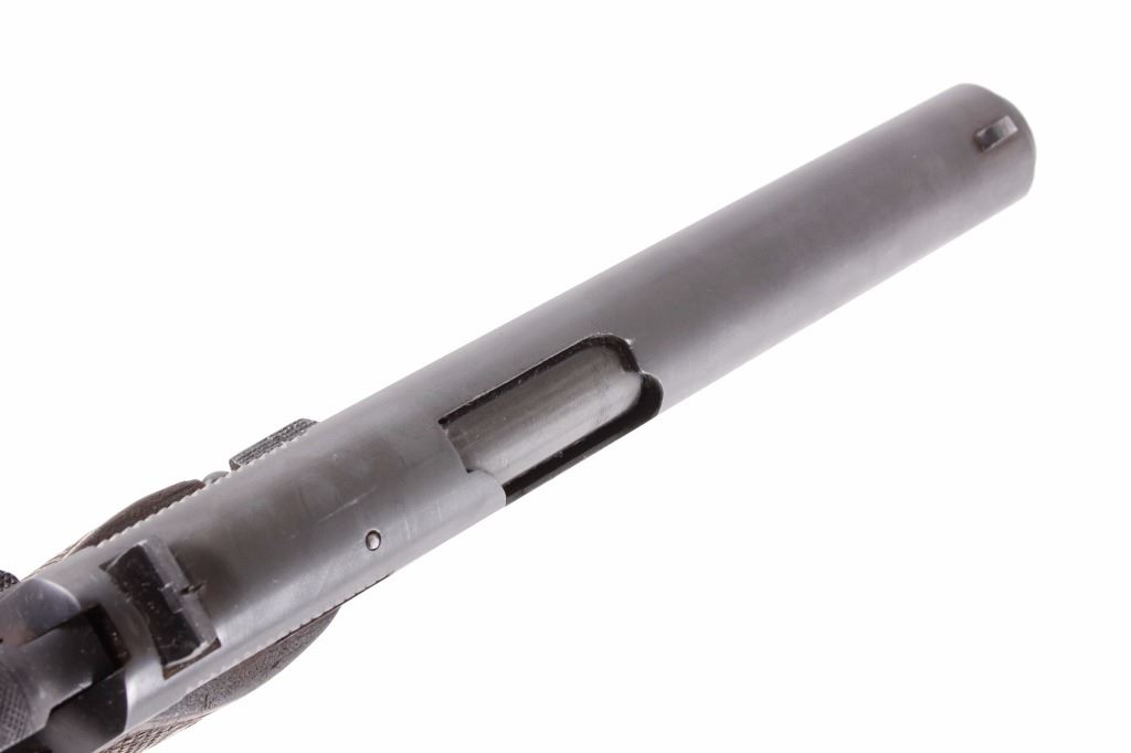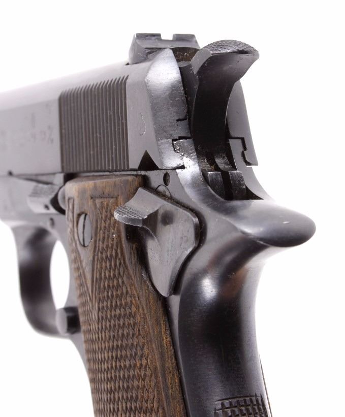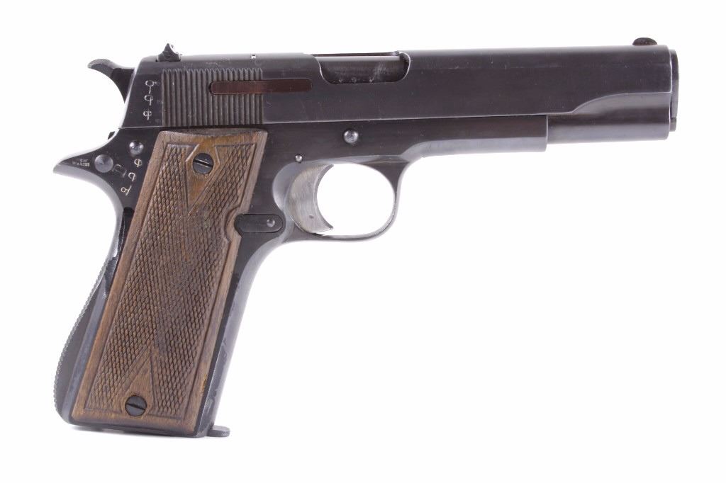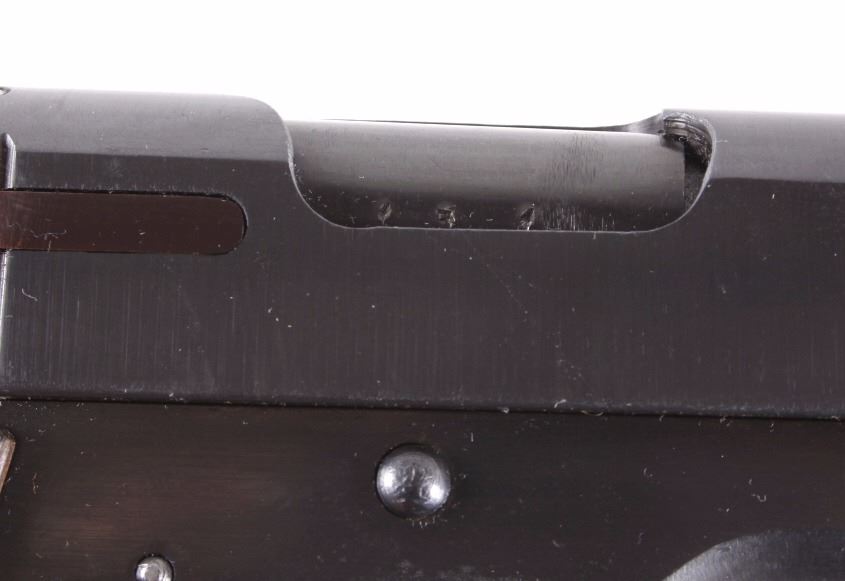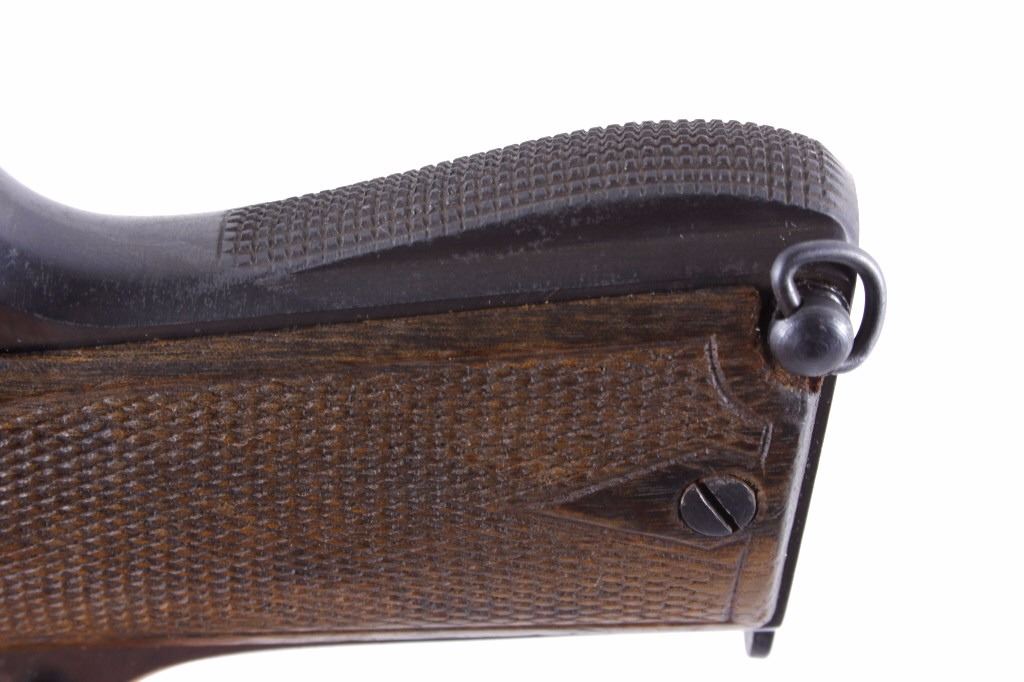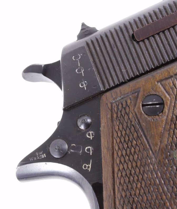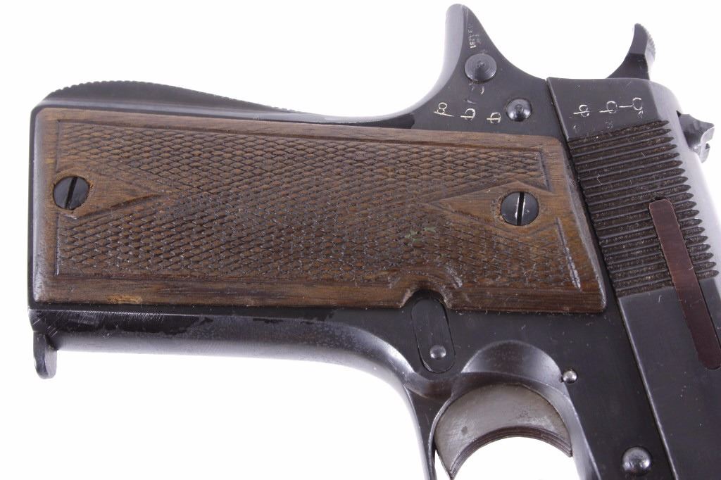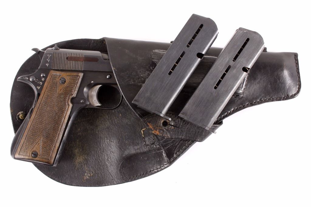This is an excellent rare Star-Bonifacio Echeverria SA Model B WWII 9mm pistol. The handgun shows a Colt 1911 style design and shows much if not all of the original blue finish (90% plus) and has walnut checkered grips. This WWII rare pistol shows the Nazi acceptance mark on the right side of the frame, "eagle/WaA251." This WWII issue pistol was manufactured in 1943 and comes with the original unmarked black leather holster with "STAR" marked "131" matching serial number magazine and extra "STAR 338" magazine (two mags total). With only 13,000 of these variants being made and a limited amount being Nazi proof marked, this is truly a very rare piece. Marked on left, "STAR-SA CONTINJADORA DE B. ECHEVERRIA EIBAR ESPANA CAL 9 M/M" with bomb 'P' and other correct markings. Marked on right with correct hallmarks and the Nazi German eagle/WaA251. Serial Number 230131. Curio & Relic requires FFL Transfer or NICS Background. Review the pictures for description correctness and originality. Some have claimed this firearm to be a Bulgarian Ministry with spurious Nazi mark. Review pictures for originality and correctness.