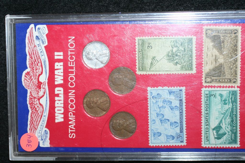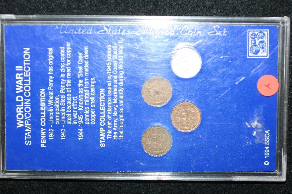 WWII Stamp/Coin Collection; Lot of 4 Wheat Back Penny & Lot of 4 Stamps