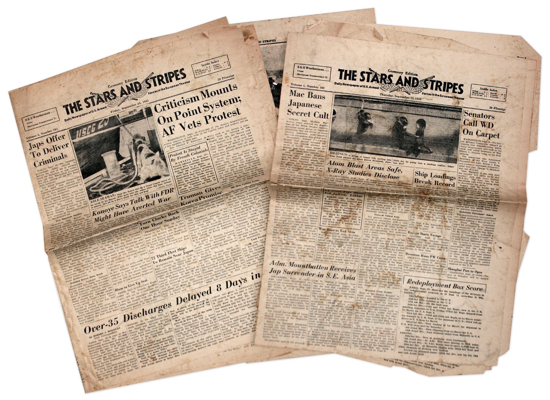 ''Stars and Stripes'' Newspapers from 12-14 September 1945 -- ''Atom Blast Areas Safe''