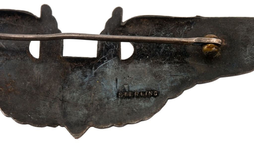 Item/Description: Sterling Silver Military Wing Pin - USAF, Gunner, Aerial. Marked 'Sterling' to back. United States Air Force.