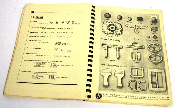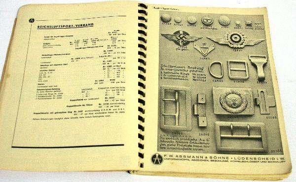 A rare F.W. Assmann & Sohne WWII German uniform insignia, a tremendous reference source, all pages are intact and usable, some tears on the cover.