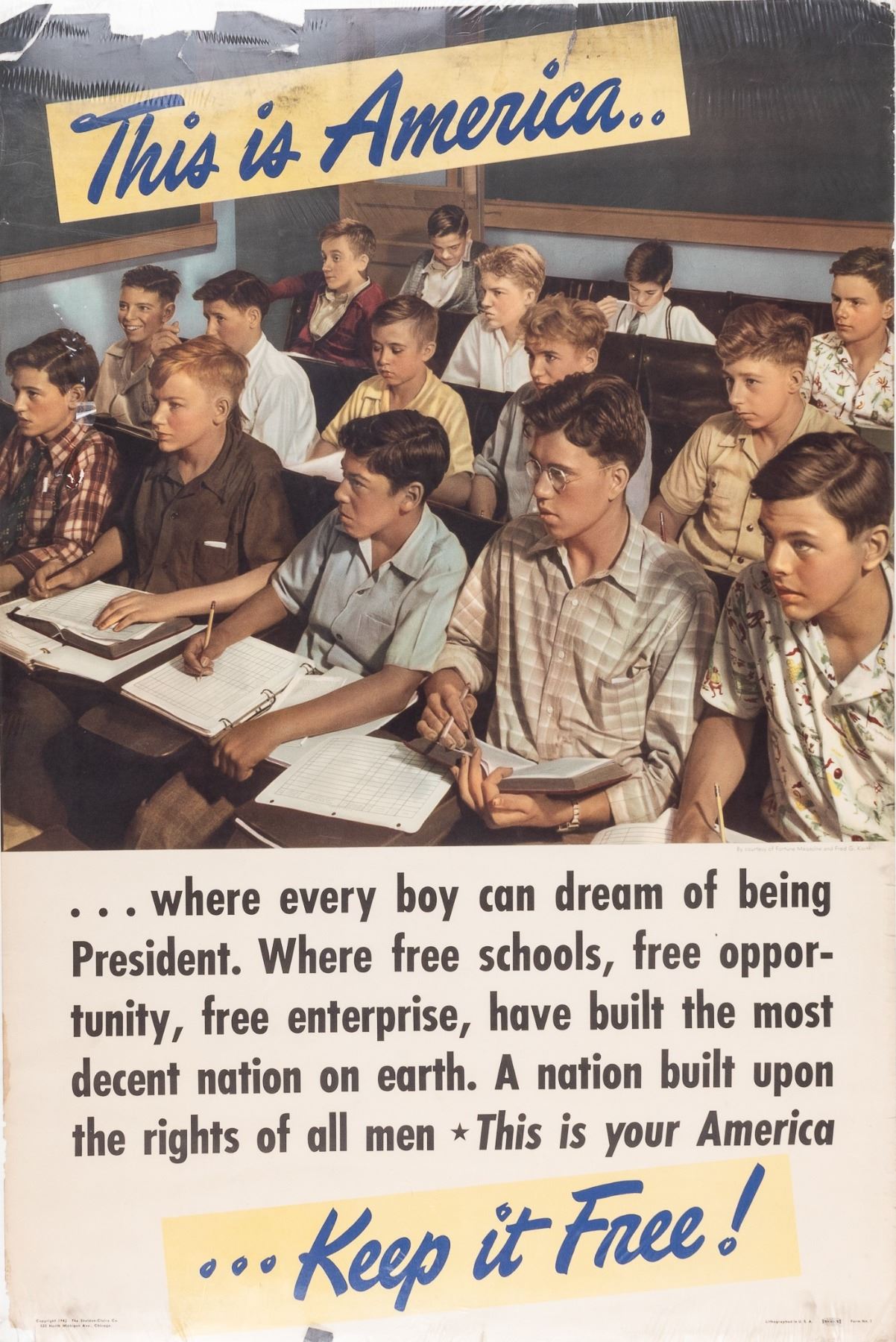 'This is America...Keep It Free!', photography by Fred G. Korth, (1902-1983), The Sheldon-Claire, Co., Form No. 3, 1942, 24 x 36 inches. 1.5-inch tear at top margin, minor chipping on right edge, loss at bottom left corner, loss at top margin on left side, slight scuffing, and minor tears.