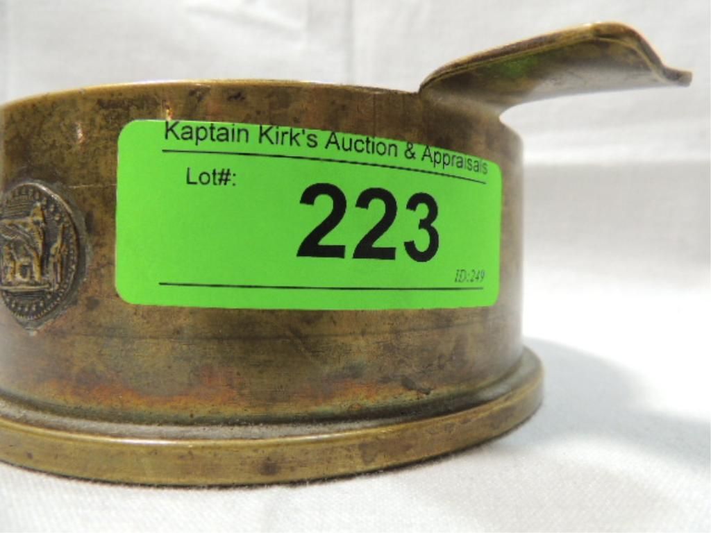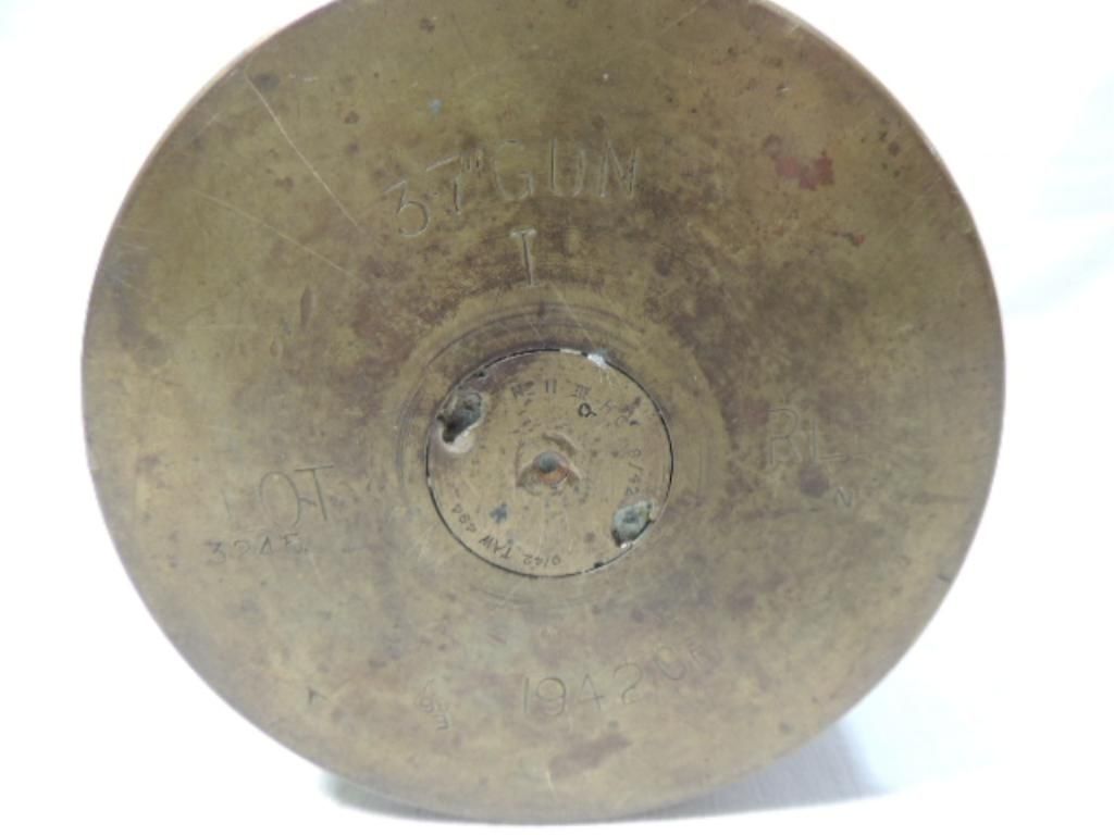 WWII TRENCH ART. EGYPTIAN GUN SHELL ASH TRAY. 37" GUN 1942 CF. AS SHOWN. SEE PHOTO FOR DETAILS.