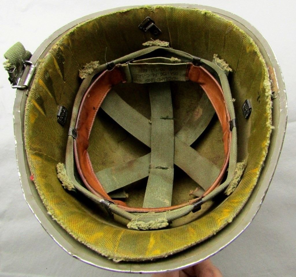WITH VIETNAM ERA LINER. HELMET IS MISSING ONE OF THE CHIN STRAP LOOPS.