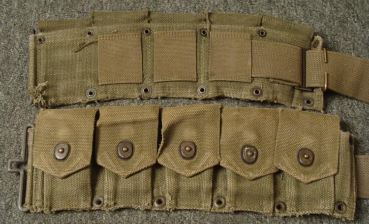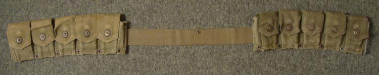 THIS IS A WWII U.S. ARMY ORIGINAL 10 POUCH AMMO BELT. THE BELT HAS AN INNER AND OUTER SNAPS AND BELT EXTENSION. IT HAS A U.S. STAMP IN FRONT AND THE MAKER'S MARK STAMPED ON THE REVERSE. BOTH ARE COMBAT FADED AND ON THE INSIDE OF ONE FLAP IT IS STAMPED "37". *