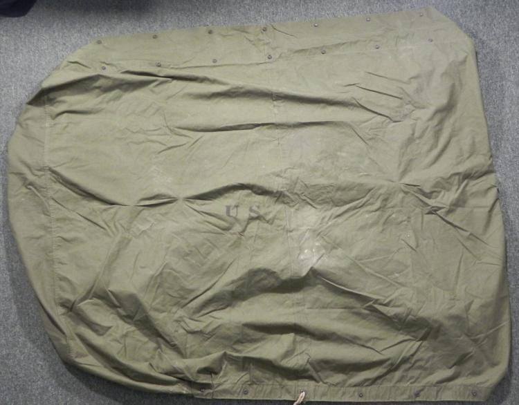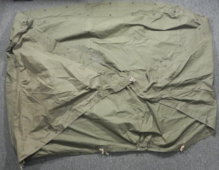 THIS IS A WWII U.S. ARMY PUP TENT-OD CANVAS WITH ROPE LOOPS ANDGROMMETS.