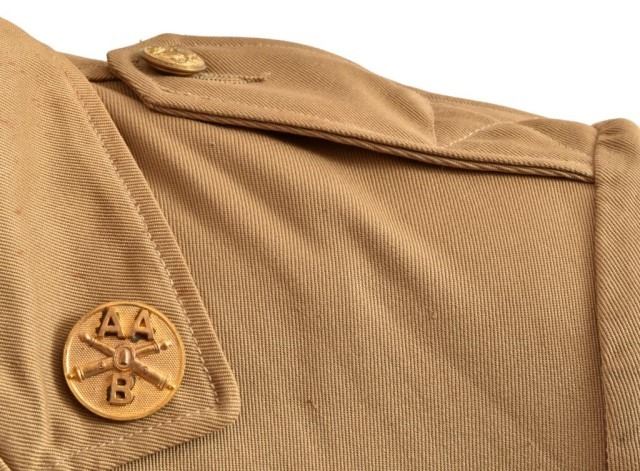 U.S. Army Enlisted Tunic Artillery, Anti-Aircraft Collar Brass Company B, circa 1940.