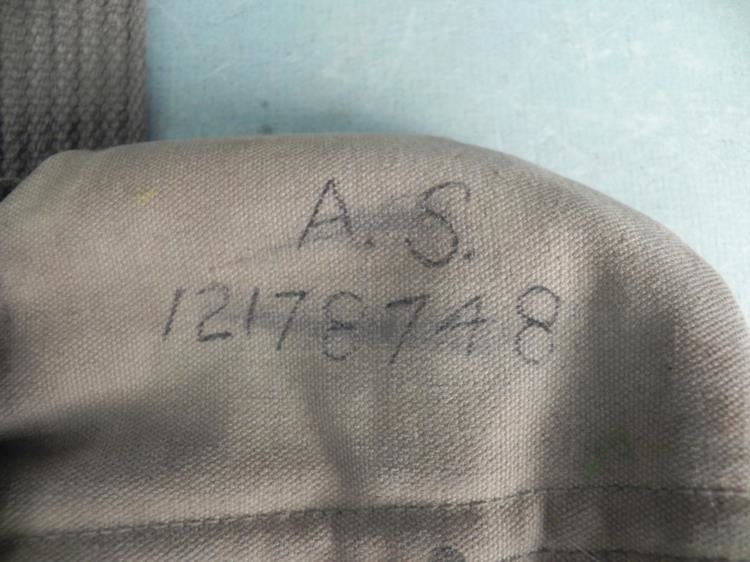 WWII U.S. ETO OVERSEAS CAP W/ RIBBON BARS-CANTEEN COVER & WEB BELT OVERSEAR OFFICER'S CAP WITH LARGE NAZI METAL INSIGNIA-2 RIBBON BARS (US) & CPL INSIGNIA--ALSO, WEB BELT (SLIGHT DAMAGE) WITH CANTEEN COVER (NAMED)-NICE GROUPING