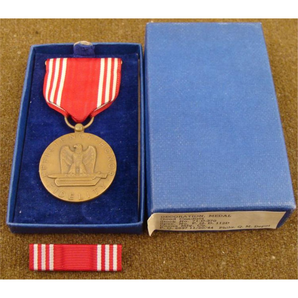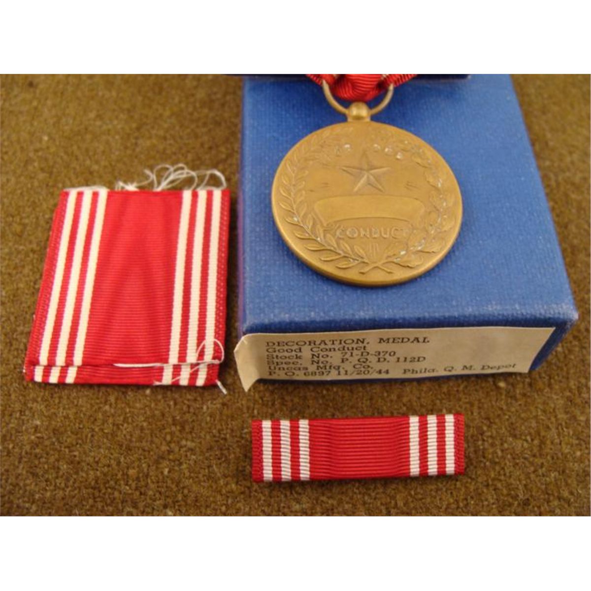 WWII U.S. GOOD CONDUCT MEDAL & RIBBON BAR IN PRESENTATION BOX -QM DATED 1944 * -MINT *