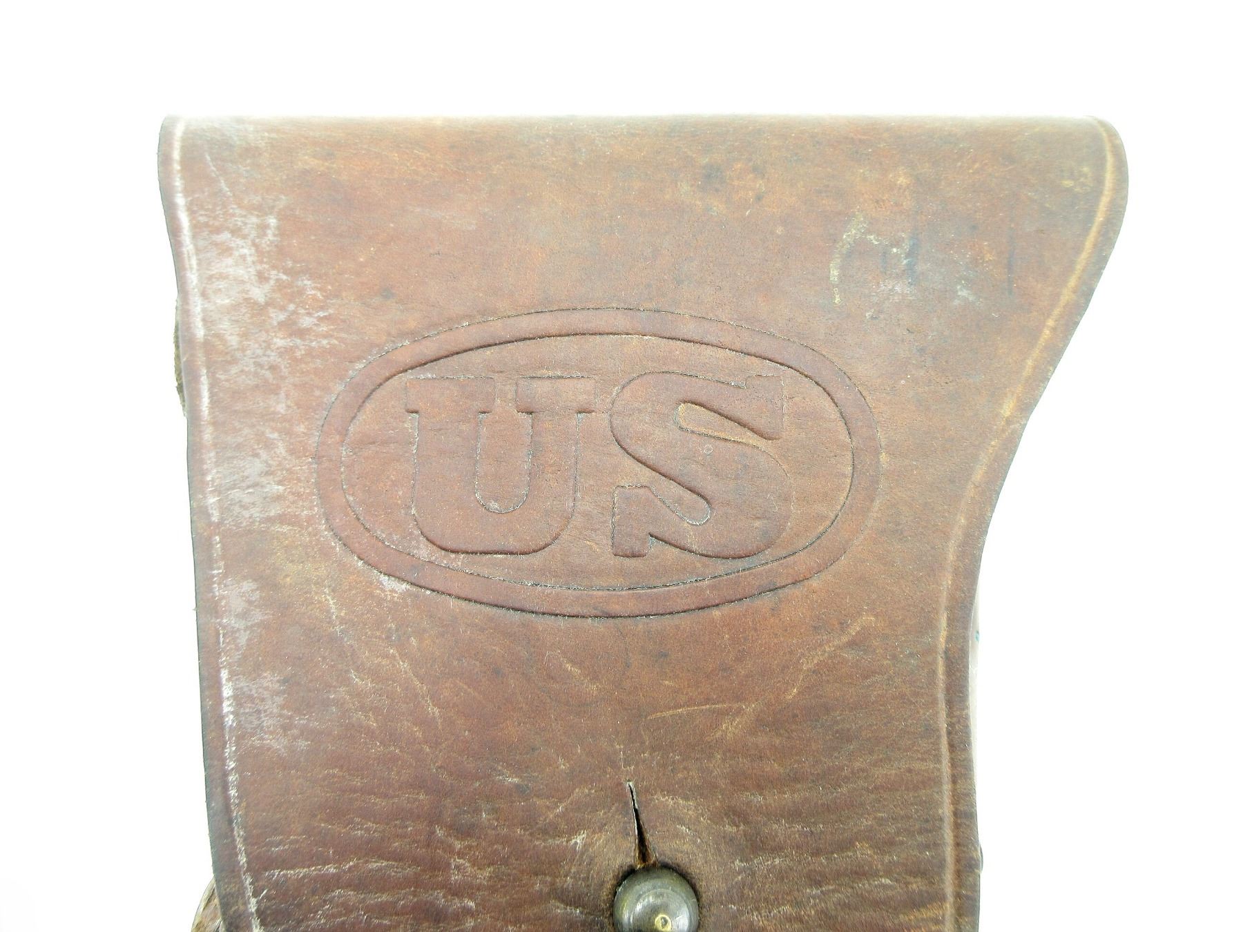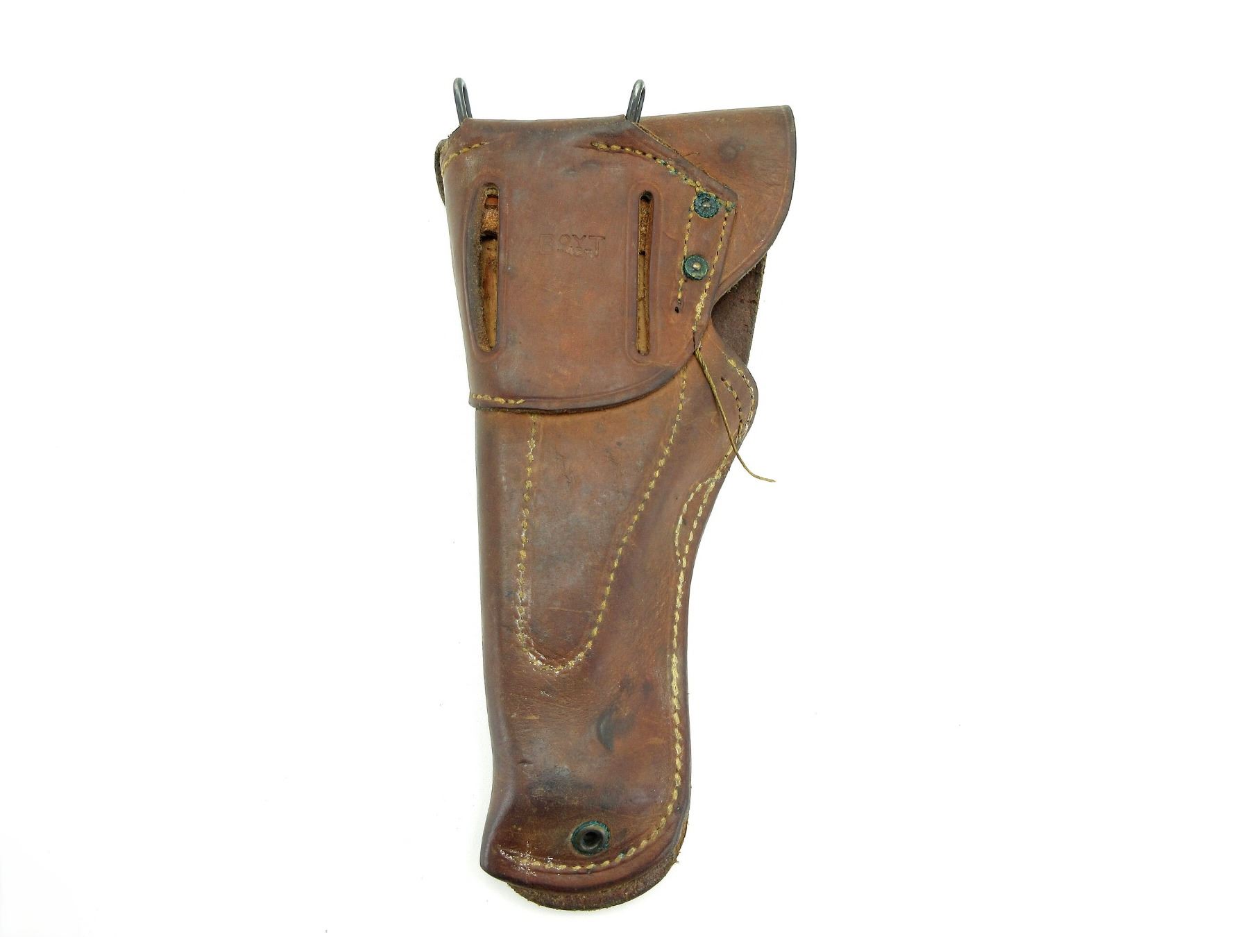 (1) FITS 1911 .45 ACP PISTOLS, BROWN LEATHER WITH BELT HOOKS & BELT LOOP, MARKED: "US" & "BOYT 42". SEE PHOTOS.