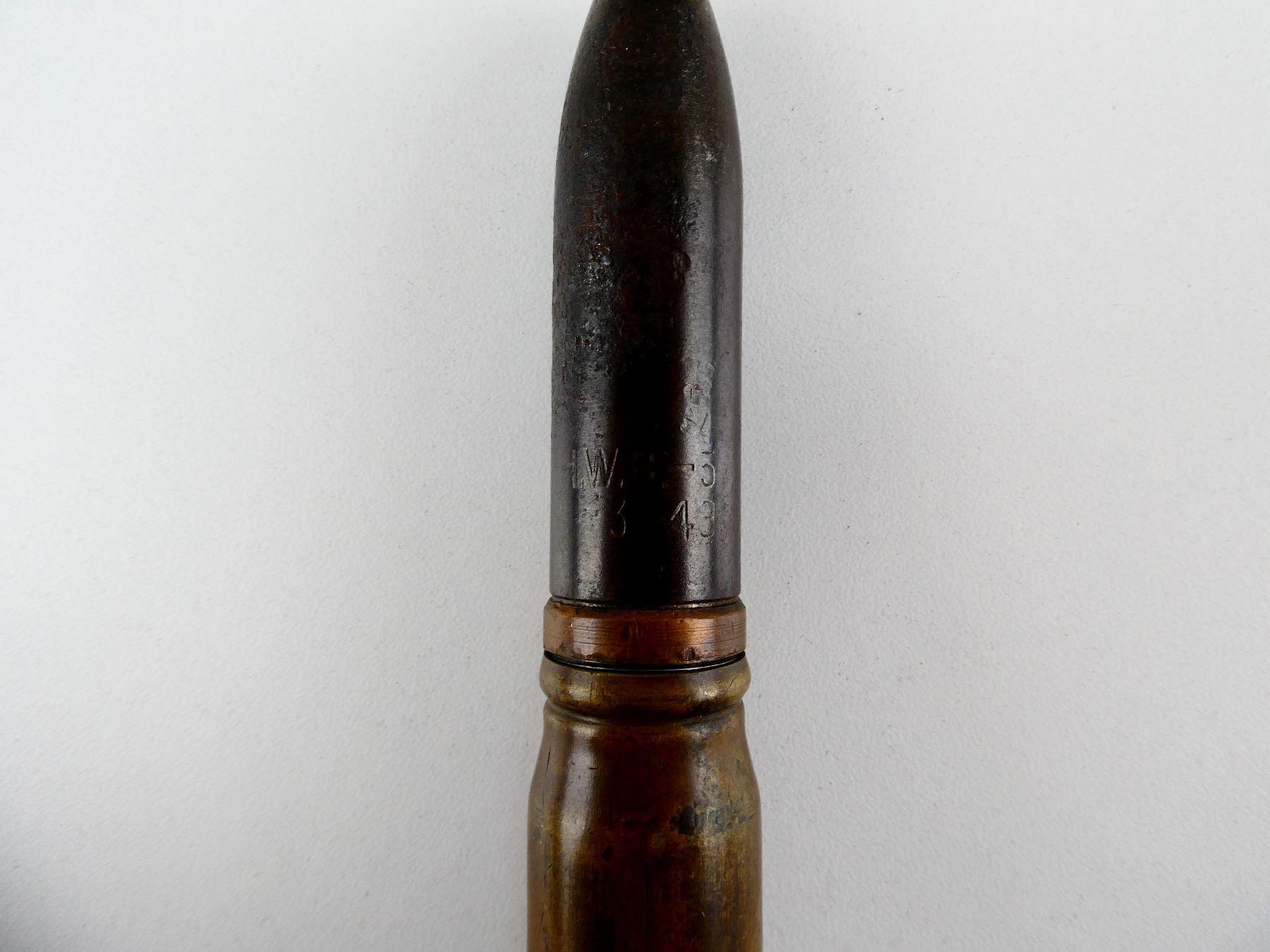 LOT INCLUDES; (1) DUMMY RND, CASE MARKED BP.C 1942 20MM M21, BULLET MARKED H.W.B.-5 3-43, PROJECTILE IS LOOSE, SEE PHOTOS.