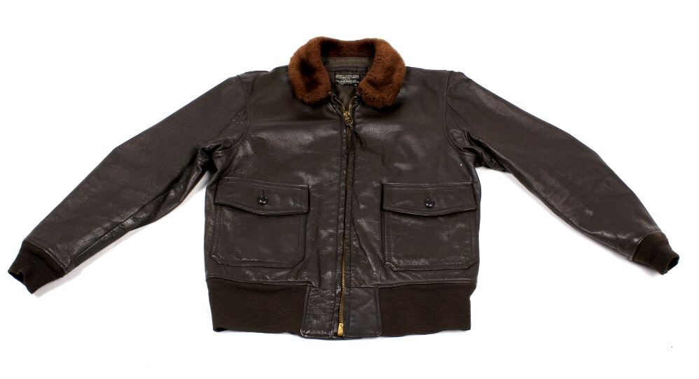 Offered for your bidding pleasure we have a WWII U.S. Navy G-1 leather bomber jacket. The G-1 jacket remains a current uniform-issued item in naval aviation for officer and enlisted aviation personnel to this day. This jacket shows a rich leather body with a fleece collar. Embroidered on the inside flap of the leather fly shows "USN". The inside lining to this jacket is made from a synthetic material such as polyester or nylon. This item is a size 42 and shows excellent condition considering the age.