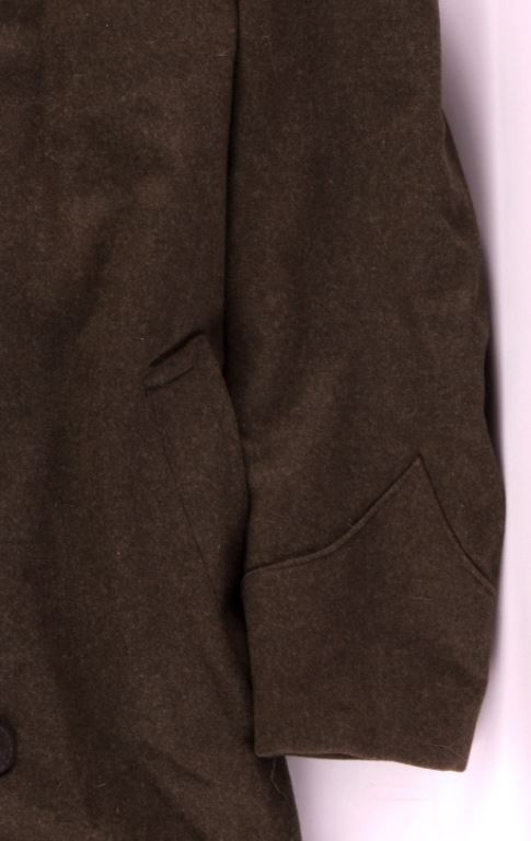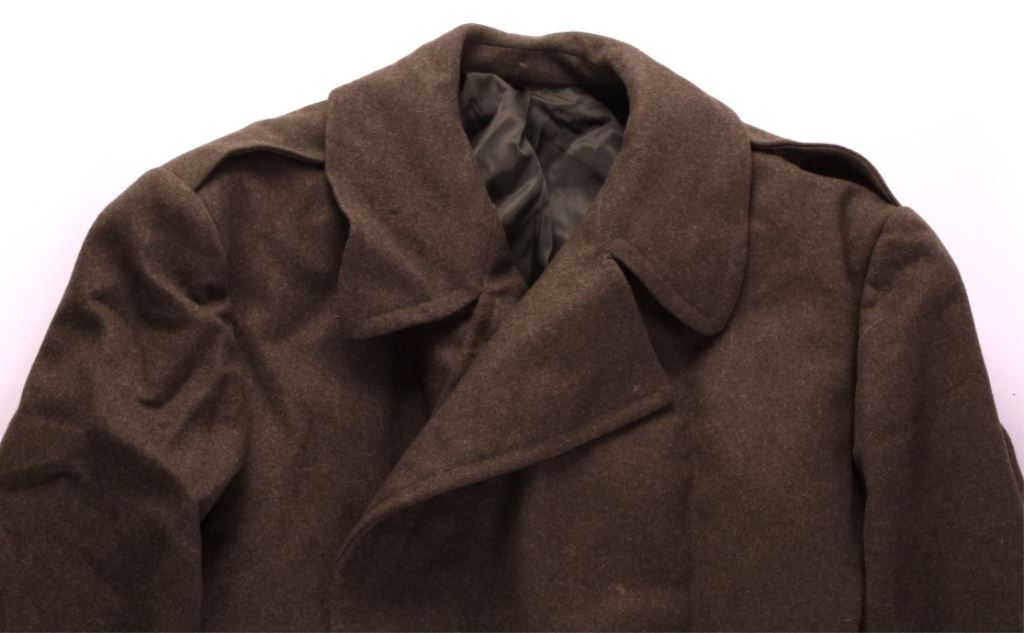This is a WWII era U.S. Navy wool trench coat. The trench coat is made from wool. Coats such as this were essential to protecting troops from the extreme cold they would experience during the war. The trench coat shows good condition. It is size XL.