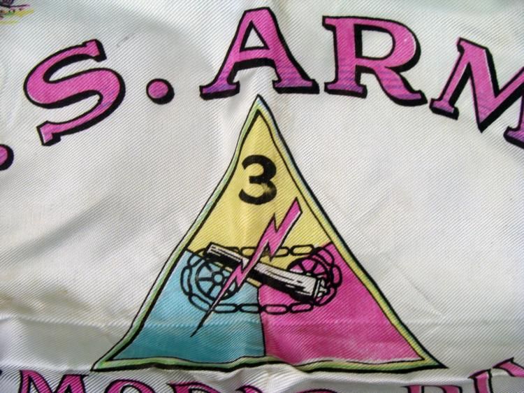 HERE IS A WWII U.S. ARMY 3RD ARMORED DIVISION SWEETHEART PILLOW CASE COVER. ON THE FRONT IT SHOWS GREAT GRAPHICS. IT IS A 20" SQUARE WITH FRINGES. *