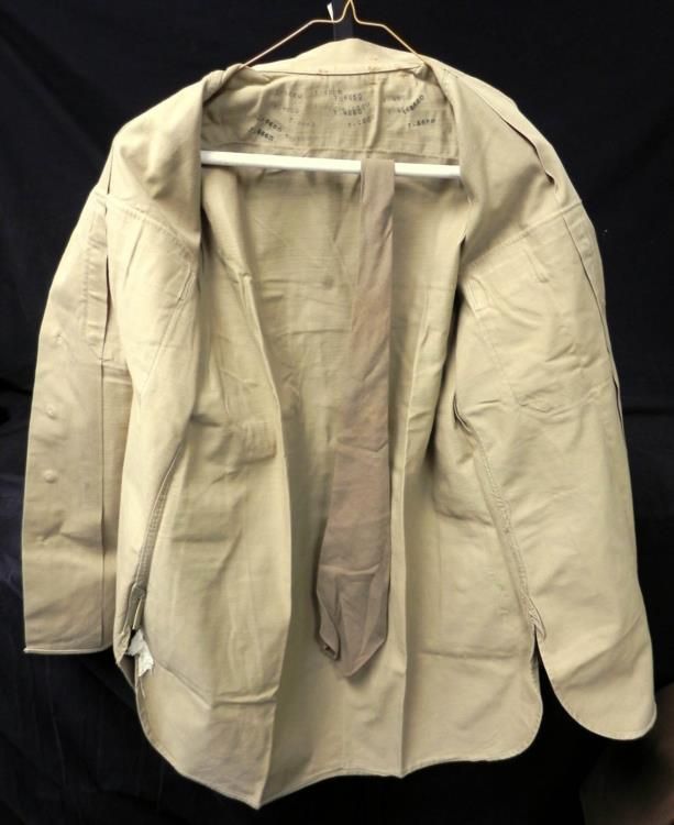 WWII US ARMY HEAVY TAN COTTON FIELD SHIRT HAS STAFF SGT PATCH AND WESTERN PACIFIC PATCH-& DRESS TIE---GREAT CONDITION-MEDIUM SIZE
