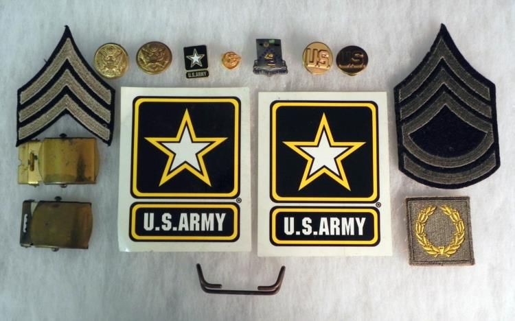 WWII US ARMY LOT OF 15 ITEMS- INSIGNIA, BUCKLES, DI ETC---NICE COLLECTION OF MILITARY