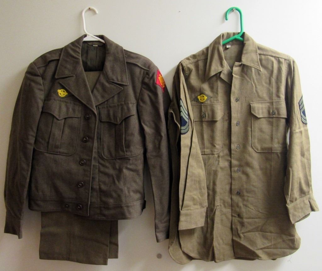 INFANTRY DIVISION & WWII SERVICE PATCHES- 34R COAT, 14-32 DRESS SHIRT, 30/31 TROUSERS- THERE ARE SOME SMALL MOTH HOLES
