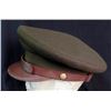 WWII US ARMY VISOR HAT-PRV PURCHASE-MOHAIR-INSIGNIA-ID'D--+ 2 SIDE CAPS---HIGH QUALITY-BEAUTIFUL BROWN MOHAIR WOOL VISOR WITH LEATHER FRONT VISOR AND WRAP-AROUND CHINSTRAP-VET'S ID INFO INSIDE AND MAKER MARKED "THE COLUMBIA-NY"- ALSO 2 TAN SIDE CAPS