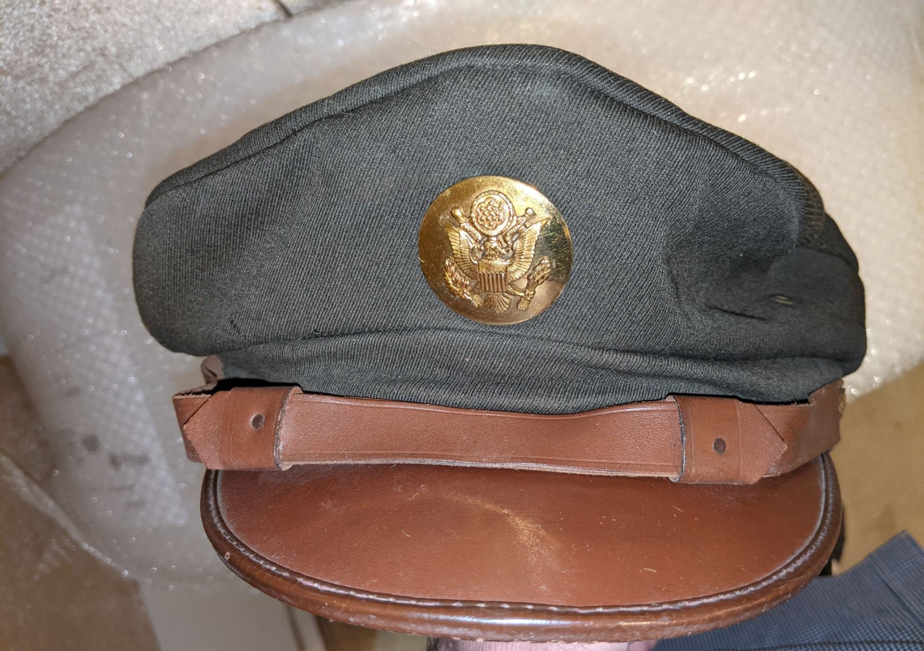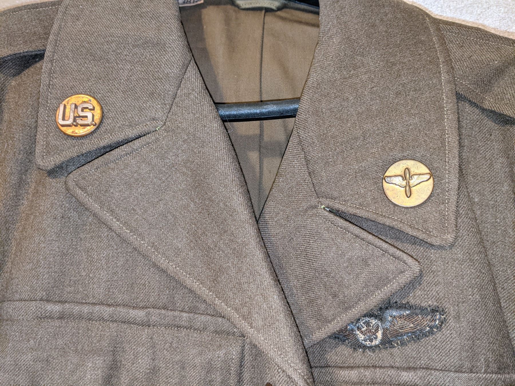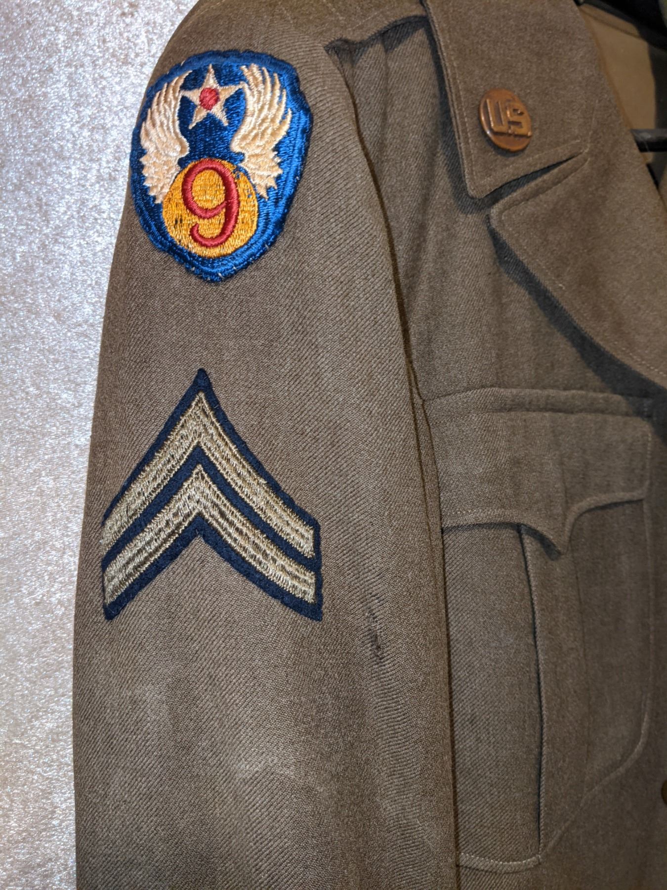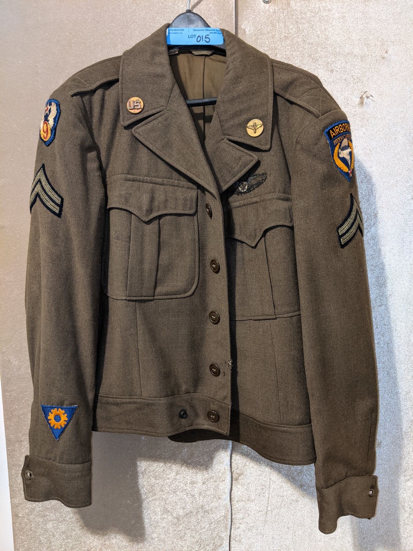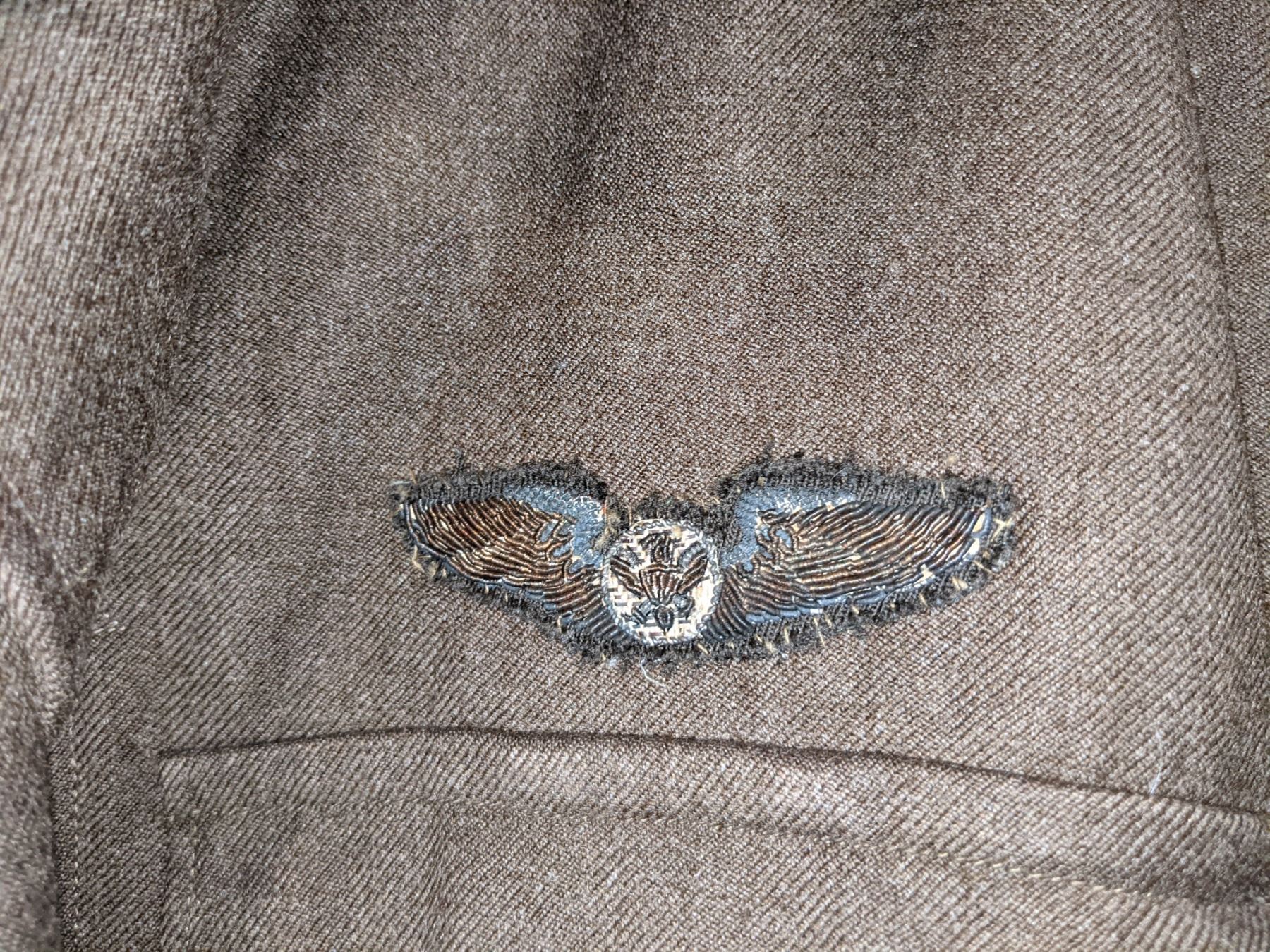WWII US Army air corps 1944 jacket, airborne troop carrier with bullion wings and airborne WWII cap
