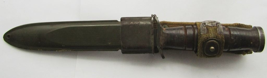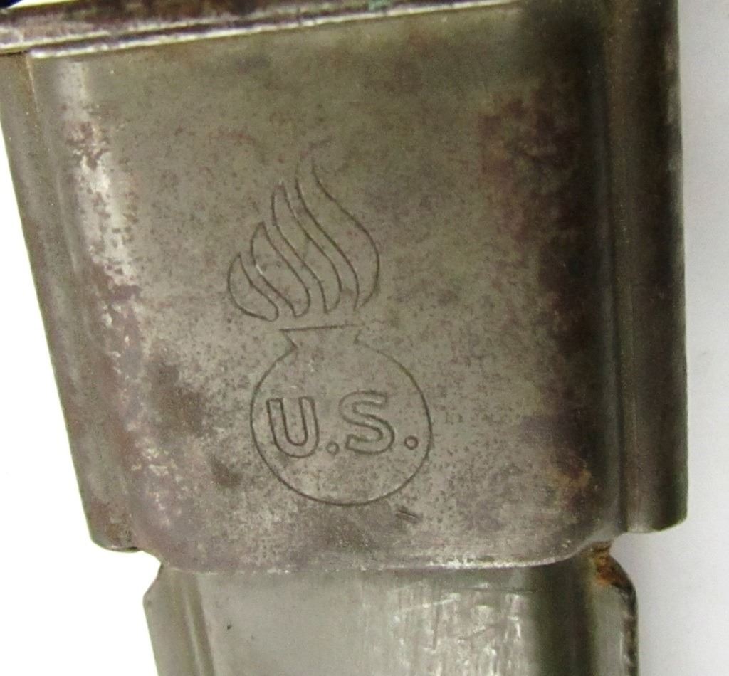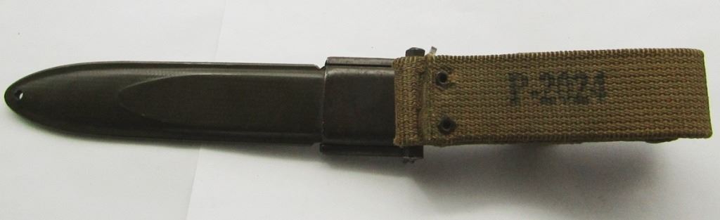 SCABBARD MARKED P - 2024 FLAMING BOMB HALLMARK ON BOTTOM OF KNIFE AS WELL.