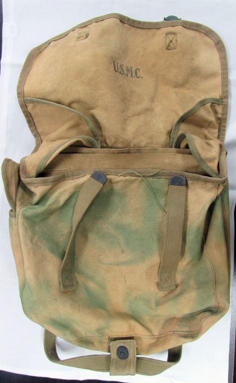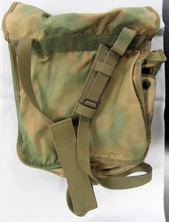 FIELD KNAPSACK- HAS GREEN PATTERN SPRAY PAINT FOR CAMOUFLAGE- COMPLETE!