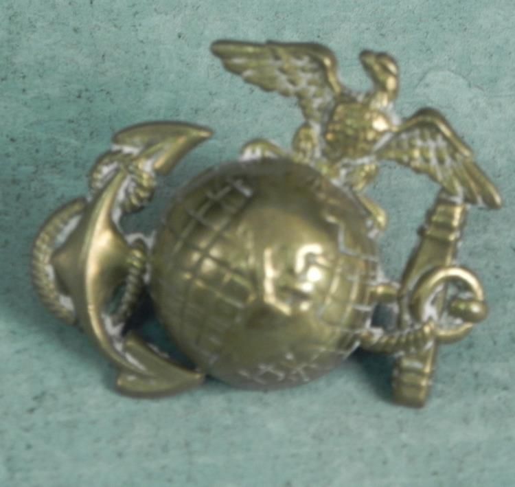 WWII US MARINE DRILL SGT "SMOKEY" HAT DEVICE-BRASS SCREW BACK GREAT PIECE-QUALITY-EAGLE/GLOBE/ANCHOR