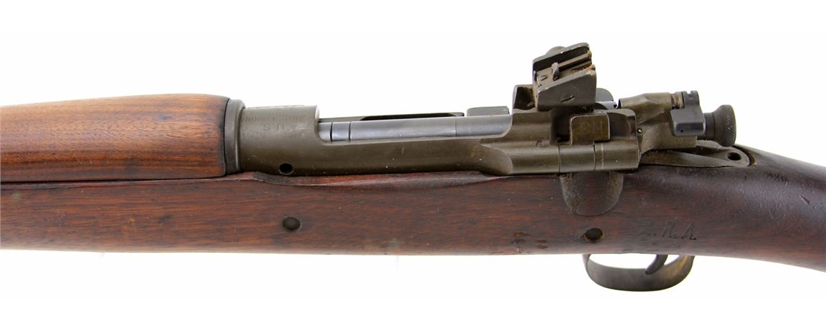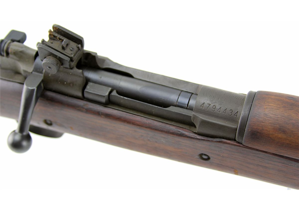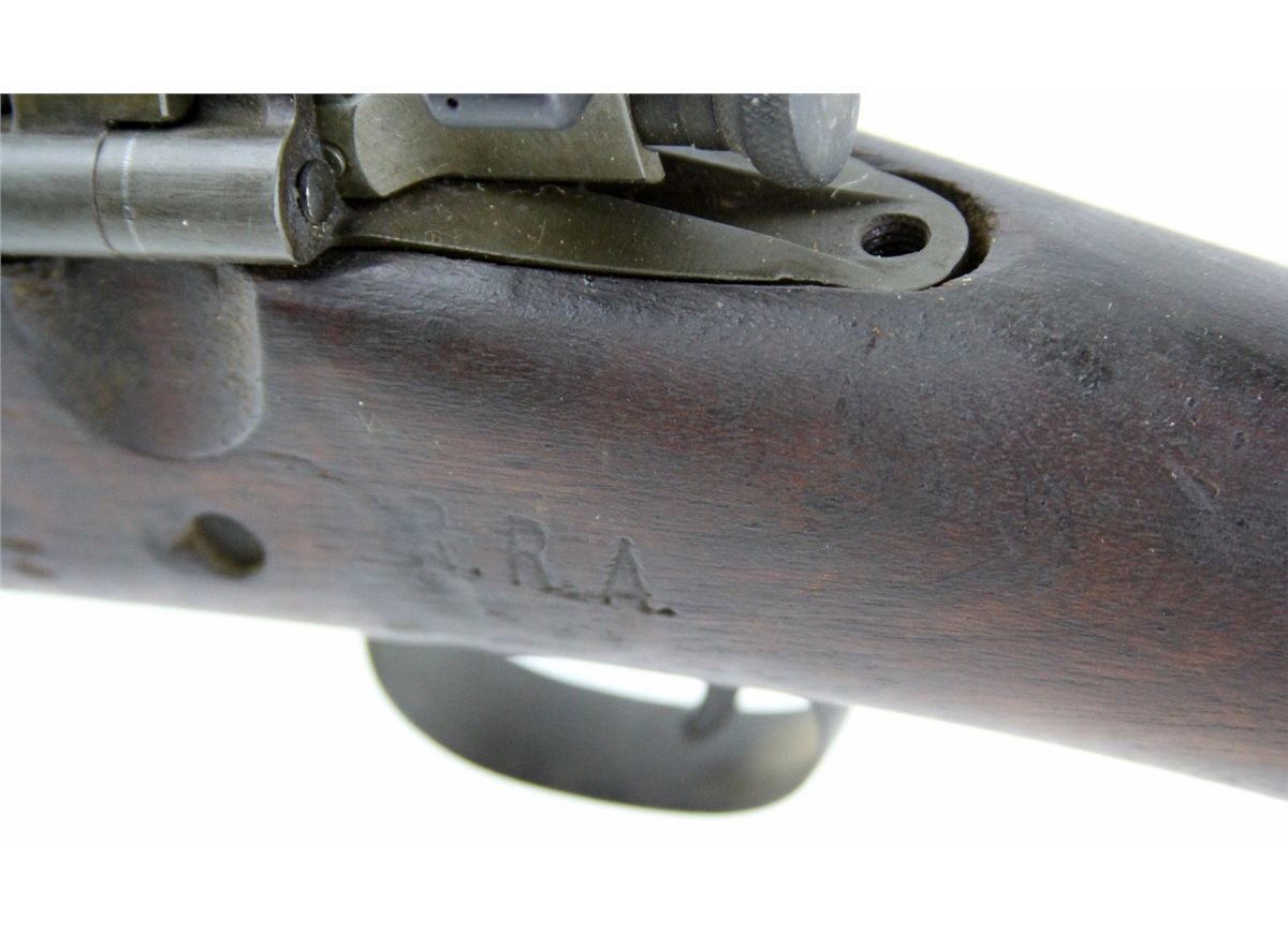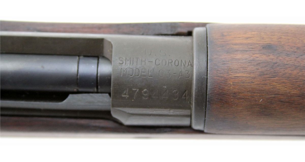 WWII US MODEL 03-A3 RIFLE SMITH CORONA 1943 US Model 03-A3 rifle manufactured by Smith Corona. Barrel dated 10-43 under "SC" and ordinance mark. Left side of stock marked "RRA", and bolt handle marked "B&S Co". Type: Rifle Manufacturer: Smith Corona Model: 03-A3 Caliber / Gauge: .30-06 Serial Number: 4794434 Condition: Bore is dark, but rifling visible. Finish is about 80%, and stock is very good, with expected wear.