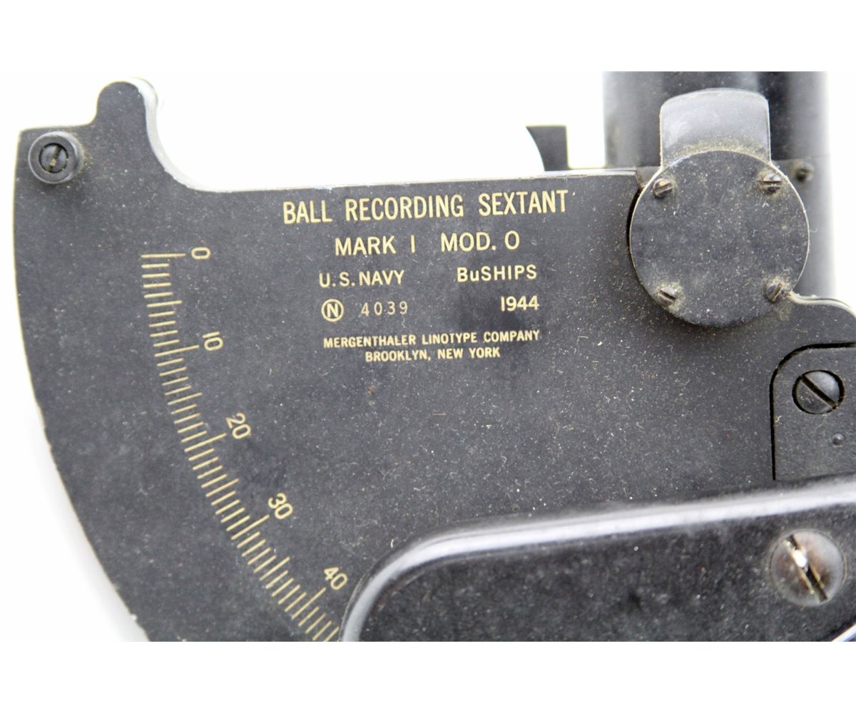 WWII US NAVY BALL RECORDING SEXTANT MARK I MOD. O Dated 1944. Serial 4039. Country: US Size: 10x8" Condition: Good.