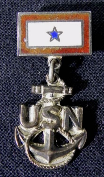 WWII US NAVY BLUE STAR & INSIGNIA SWEETHEART BROOCH-STERLING * * 1 MISSING PRONG